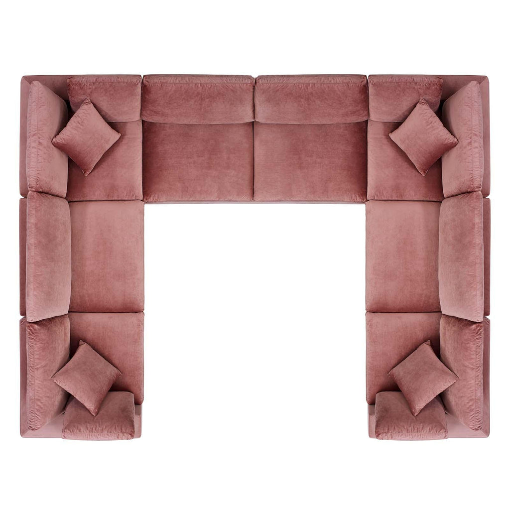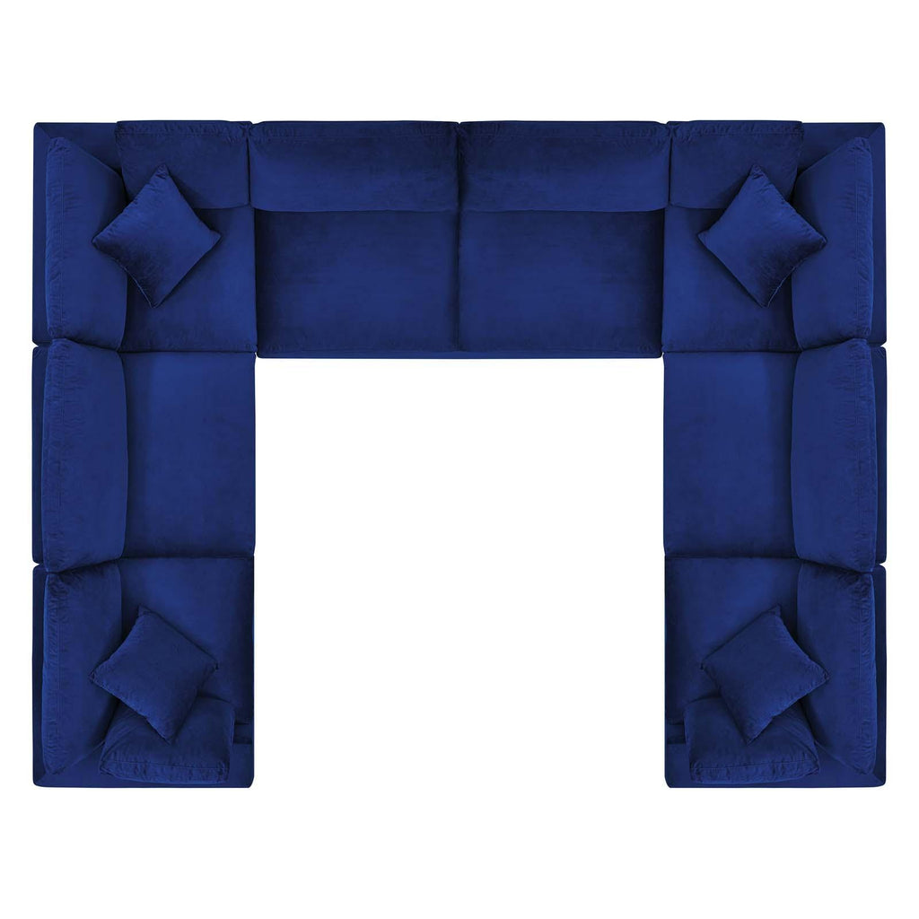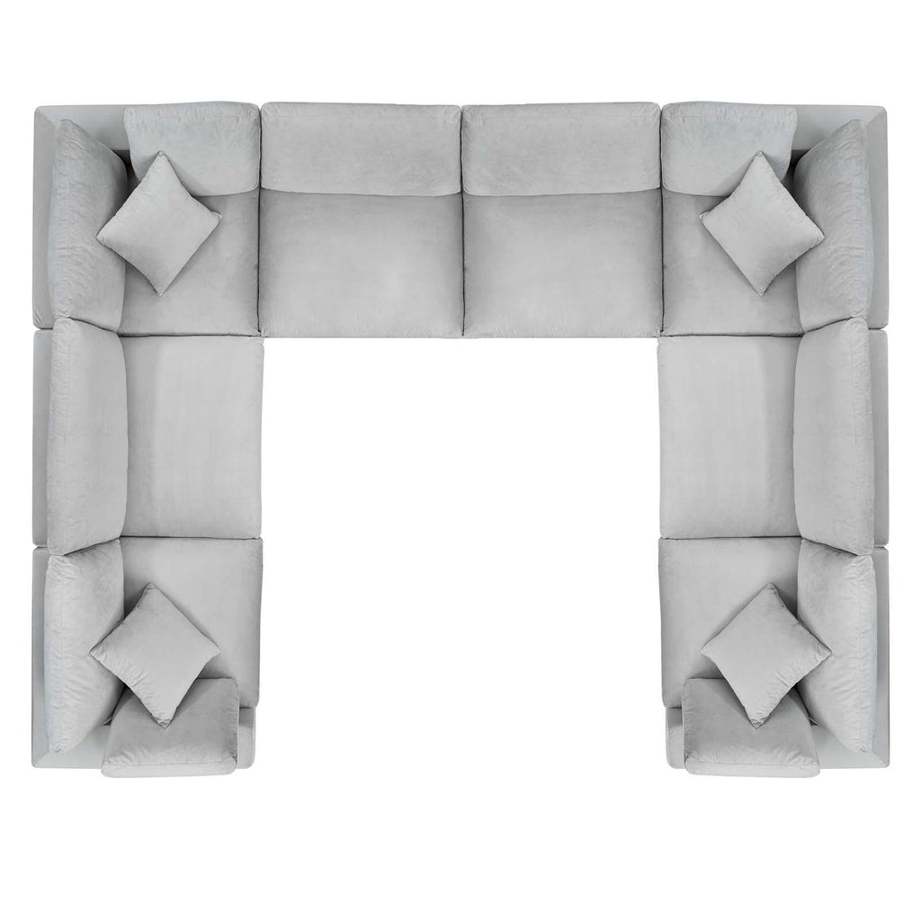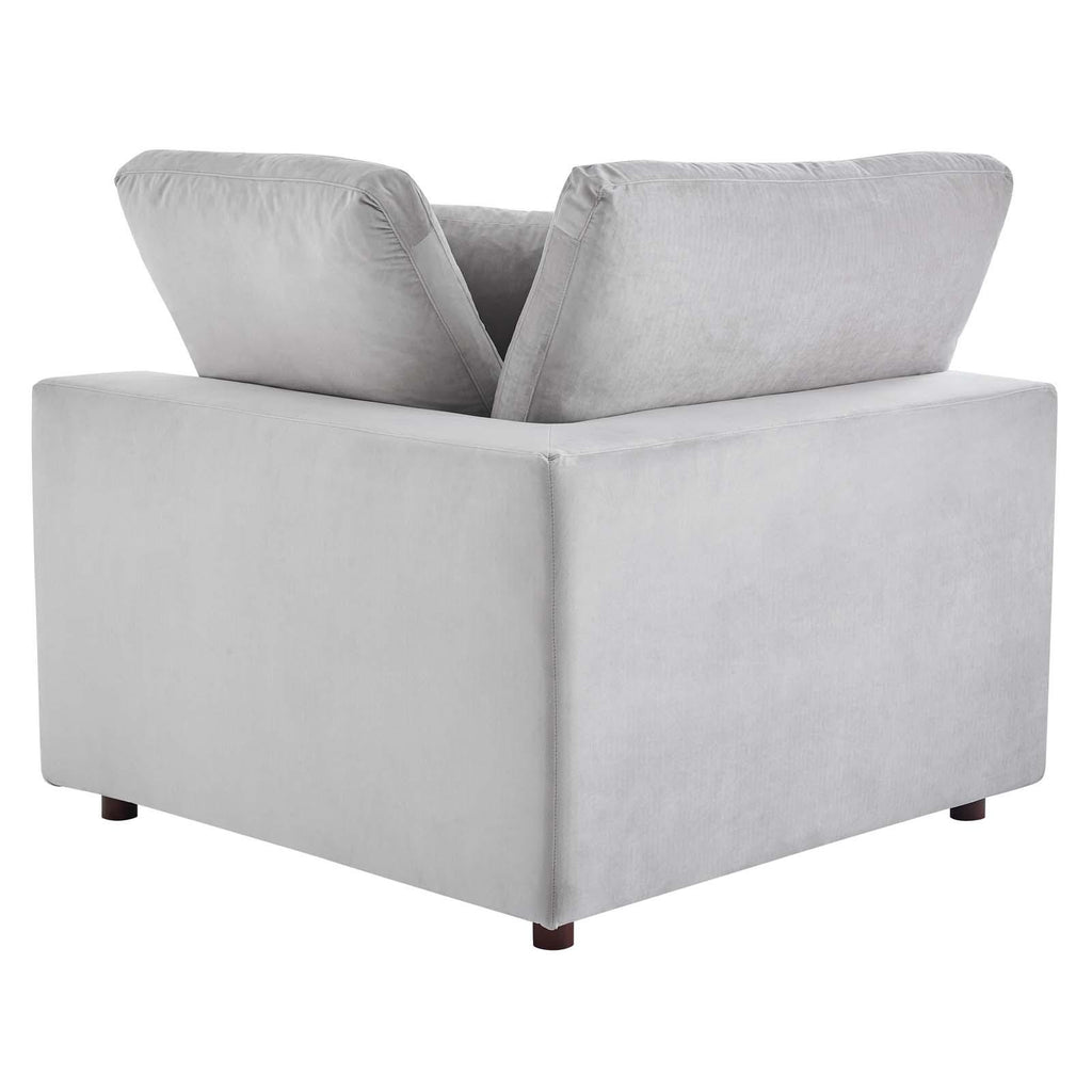 A haven for cozy relaxation, Commix features plush comfort, clean-lined design, and spacious profile, that makes an attractive statement in the modern home. Covered in stain-resistant performance velvet, this upholstered sectional sofa comes with a solid wood construction and foam padded and duck down cushions for a luxurious sink-in feel. Commix features overstuffed down feather cushions that offer a feeling of relaxation and calming comfort while lounging, making it the perfect addition to the living room, family room, or game room. Made for sprawling out or curling up, Commix beckons you and guests to sit and stay a while. Includes plastic foot glides. Weight Capacity Each Chair: 331 lbs.