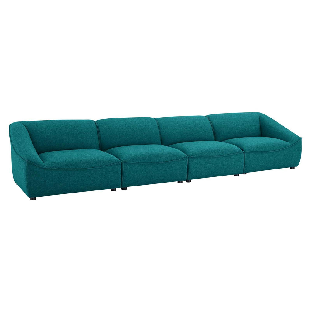Indulge in cozy relaxation in the comfort of your own home with the Comprise Upholstered 4-Piece Sofa. A casual design accented with French piping details, this four-seater sofa features dense foam padding, soft polyester upholstery and a pocket coil spring system to offer a premium seating experience. Solidly constructed with solid wood and plywood, this upholstered sofa rests atop sturdy rubberwood legs with secure connectors between modular pieces. Create a custom living room or lounge area with the Comprise Living Room Furniture Collection. Set Includes: 1 Left-Arm Chair, 1 Right-Arm Chair, 2 Armless Chairs; Weight Limit Each Chair: 400 lbs. Set Includes: One - Comprise Left-Arm Sectional Sofa Chair One - Comprise Right-Arm Sectional Sofa Chair Two - Comprise Armless Chair 4-Piece Sofa Durable Polyester Fabric Upholstery French Piping Details Pocket Coil Spring System Rubberwood Legs Modular Connectors Sofa Weight Capacity: 1200 lbs. Overall Product Dimensions: 37.5"L x 148"W x 28.5"H Overall Left-Arm Sectional Sofa Chair Dimensions: 41.5"L x 37.5"W x 28.5"H Seat Dimensions: 31.5"L x 24 - 31.5"W x 17"H Armrest Dimensions: 10"W x 17.5"H Backrest Dimensions: 13.5"W x 11.5"H Overall Right-Arm Sectional Sofa Chair Dimensions: 41.5"L x 37.5"W x 28.5"H Seat Dimensions: 31.5"L x 24 - 31.5"W x 17"H Backrest Dimensions: 13.5"W x 11.5"H Space Setween Armrest and Seat: 0.5"H Overall Armless Chair Dimensions: 37.5"L x 32.5"W x 28.5"H Seat Dimensions: 24"L x 32.5"W x 17"H Armrest Height: 17.5"H Backrest Dimensions: 32.5"W x 11.5"H