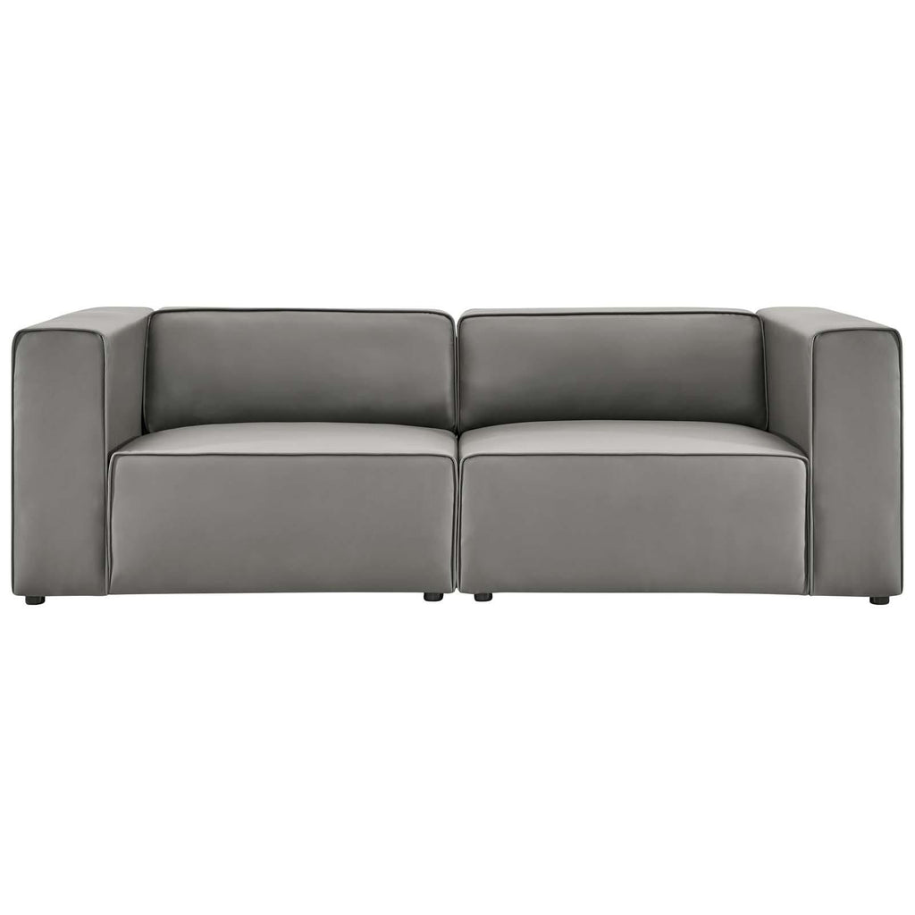 Kick back and relax with the Mingle Vegan Leather 2-Piece Sectional Sofa. Designed to wash away the hindrances that obstruct visual space, this two-seat sofa comes expansively designed with generous seating and dense foam padding that allows for just the right amount of giving. Mingle easily positions according to the needs of the moment and features rich vegan leather upholstery with elegant piping and plastic legs for steady support. Host animated living or lounge room get-togethers with a modular sectional seating assortment perfect for contemporary modern d�cors.
