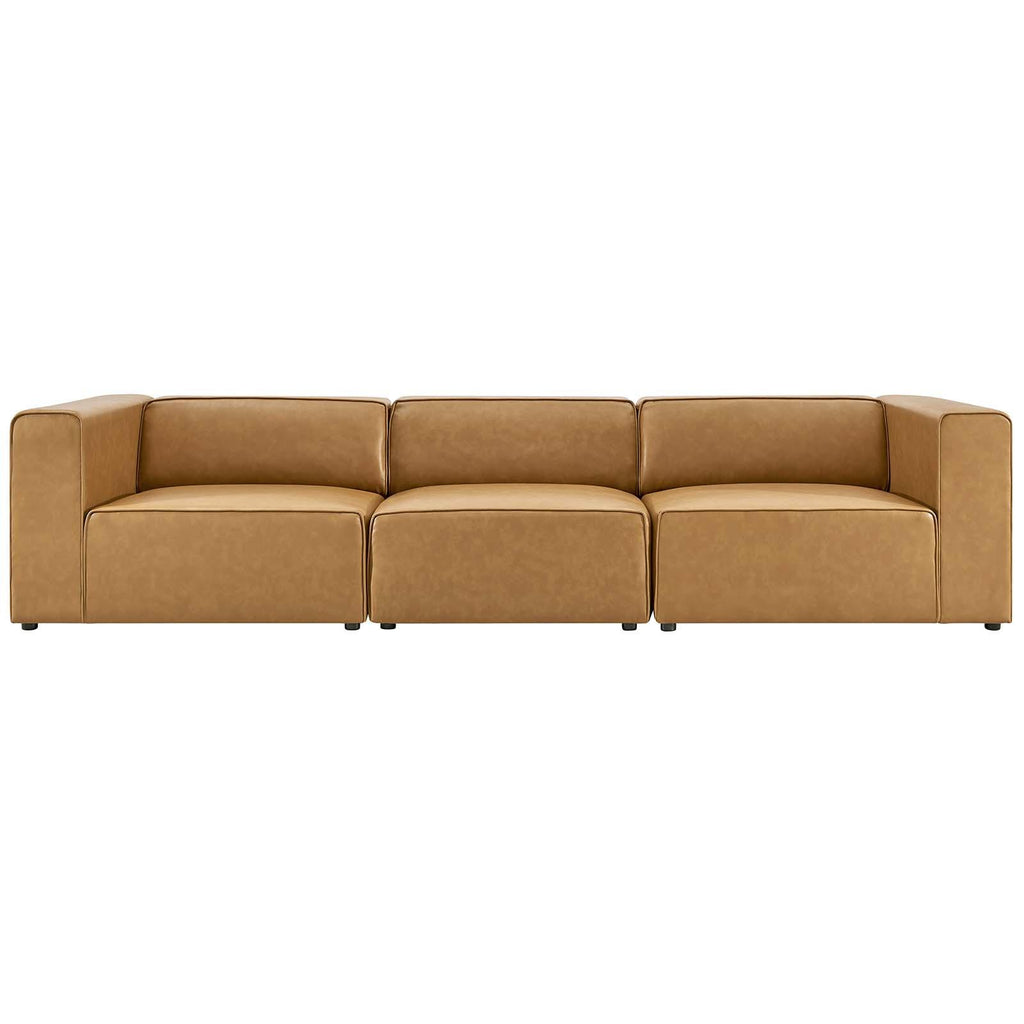 Kick back and relax with the Mingle Vegan Leather 3-Piece Sectional Sofa. Designed to wash away the hindrances that obstruct visual space, this three-seater sofa comes expansively designed with generous seating and dense foam padding that allows for just the right amount of giving. Mingle easily positions according to the needs of the moment and features rich vegan leather upholstery with elegant piping and plastic legs for steady support. Host animated living or lounge room get-togethers with a modular sectional seating assortment perfect for contemporary modern d�cors.