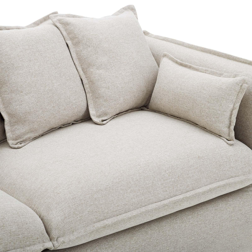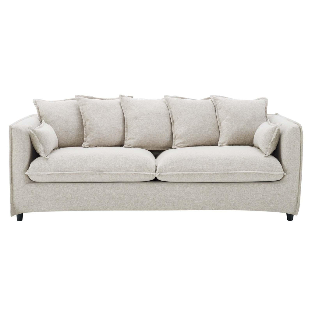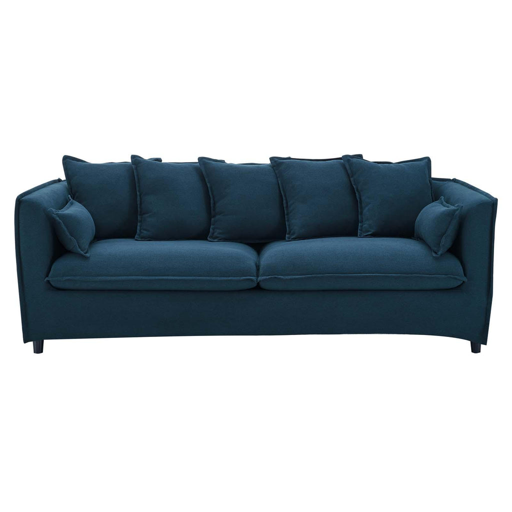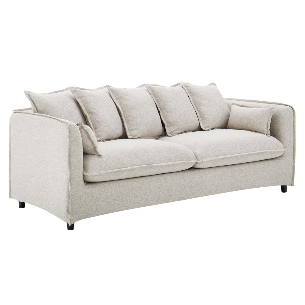 Bring casual comfort and coastal modern style to your living space with the Avalon Slipcover Sofa. With a comfortable yet tailored profile, this living room sofa beckons guests to sit back and relax. Its soft fabric upholstery offers an approachable appeal and its slipcover design allows for a refreshed look for years to come. Complete with a sturdy wood frame and black legs with non-marking pins, this sofa offers a premium seating experience thanks to its seven throw pillows, dense foam padding, and no-sag spring support system. Avalon revamps the traditional furniture shopping experience by shipping directly to your doorstep in a conveniently portable box with easy assembly instructions. Weight Capacity: 900 lbs.