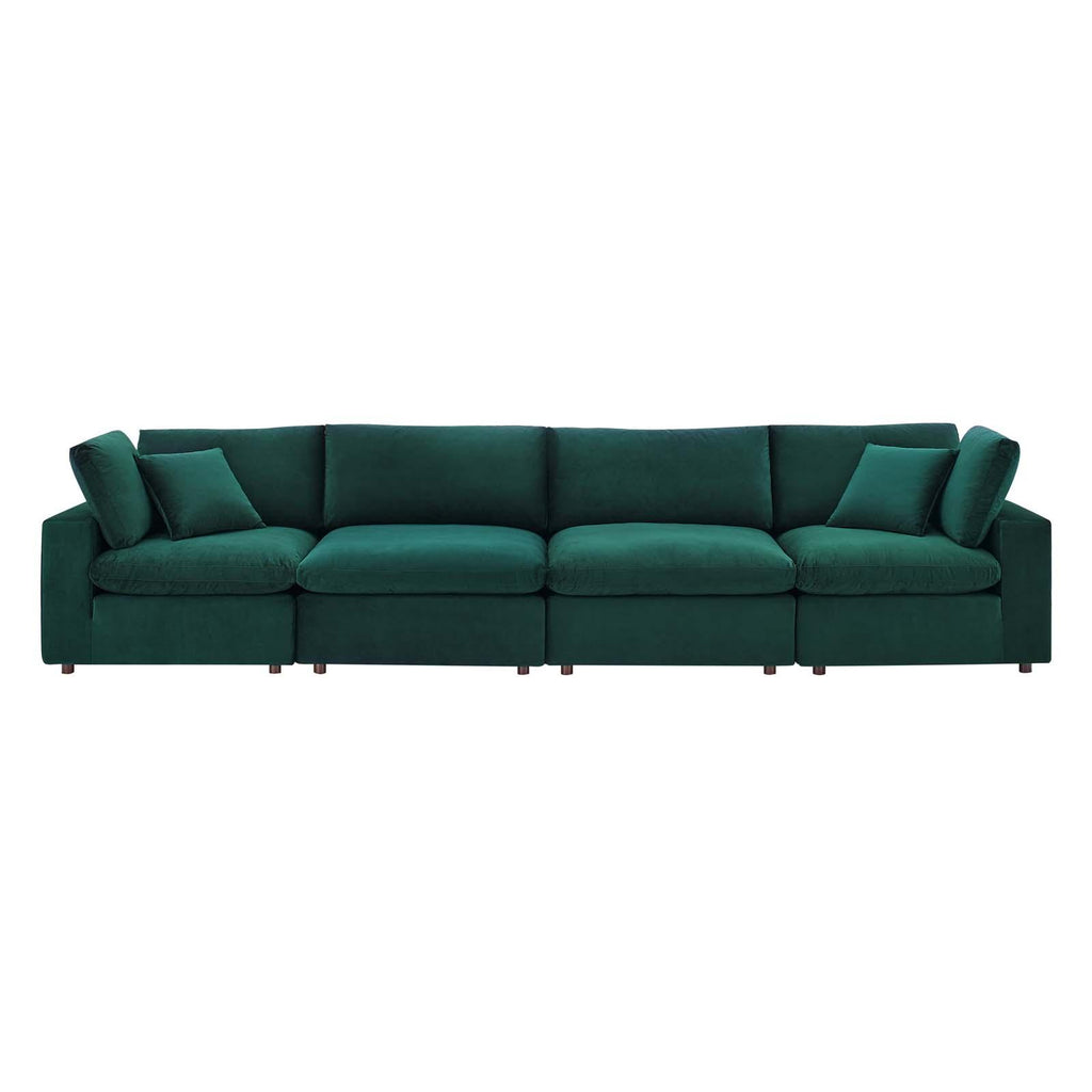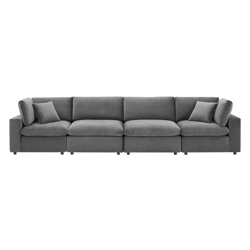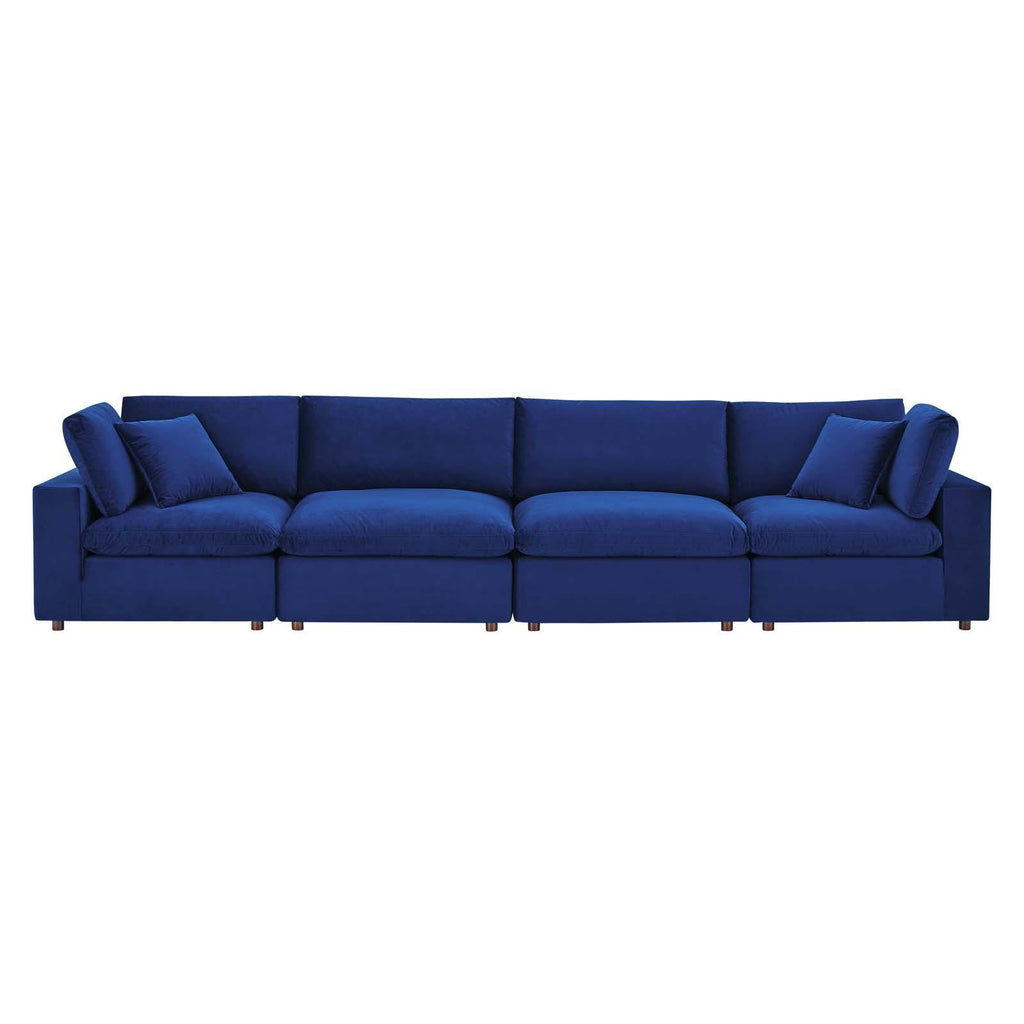A haven for cozy relaxation, Commix features plush comfort, clean-lined design, and spacious profile, that makes an attractive statement in the modern home. Covered in stain-resistant performance velvet, this upholstered sofa comes with a solid wood construction and foam padded and duck down cushions for a luxurious sink-in feel. Commix features overstuffed down feather cushions that offer a feeling of relaxation and calming comfort while lounging, making it the perfect addition to the living room, family room, or game room. Made for sprawling out or curling up, Commix beckons you and guests to sit and stay a while. Includes plastic foot glides. Weight Capacity of Each Piece: 331 lbs.