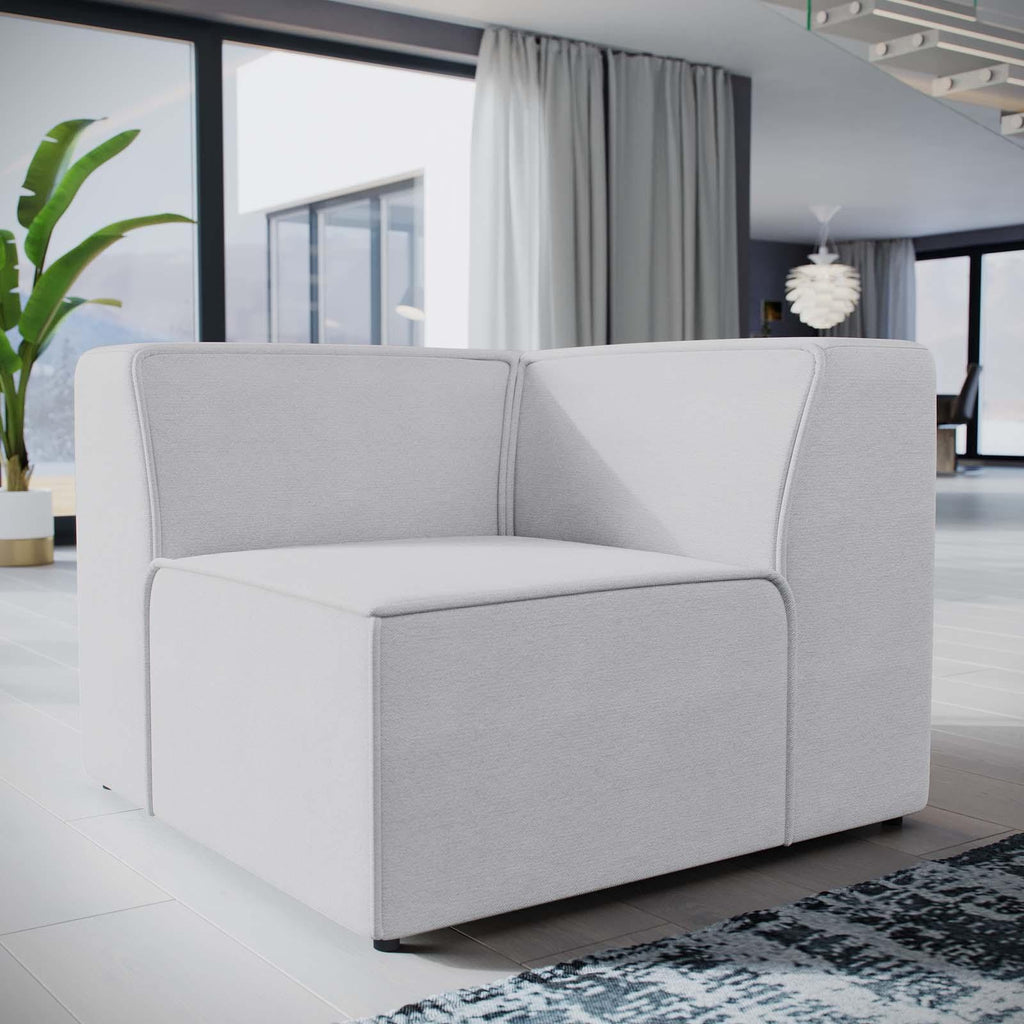 Kick back and relax with Mingle. Designed to wash away the hindrances that obstruct visual space, Mingle comes expansively designed with generous seating and dense foam padding that allows for just the right amount of giving. Mingle easily positions according to the needs of the moment and features richly textured polyester with elegant piping and plastic legs for steady support. Host animated living or lounge room get-togethers with a modular sectional seating assortment perfect for contemporary modern d�cors. Set Includes: One - Mingle Corner Sofa Contemporary modern corner seat Finely upholstered in polyester Generous foam padded cushions Elegant trim lining Sturdy plastic legs Assembly not required Chair Weight Capacity: 440 lbs. Overall Product Dimensions: 37"L x 37"W x 27"H Seat Dimensions: 25"L x 25"W x 15.5"H Armrest Dimensions: 28.5"L x 8.5"W x 27"H Armrest Height from Seat: 11.5"H Backrest Dimensions: 8.5"L x 28.5"W x 27"H Base Dimensions: 37"L x 37"W