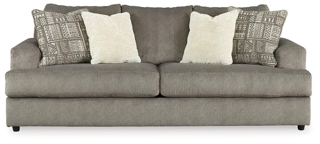 Flaunting a trendsetting silhouette, this sofa puts the contemporary in your contemporary home. Its “three over two†profile eliminates the center seat cushion, giving you elongated plushness and deep seating. Microfiber fabric satisfies your need for a piece that feels as good as it looks. Accented with soft jacquard chenille throw pillows for a splash of geometric pattern and color contrast.