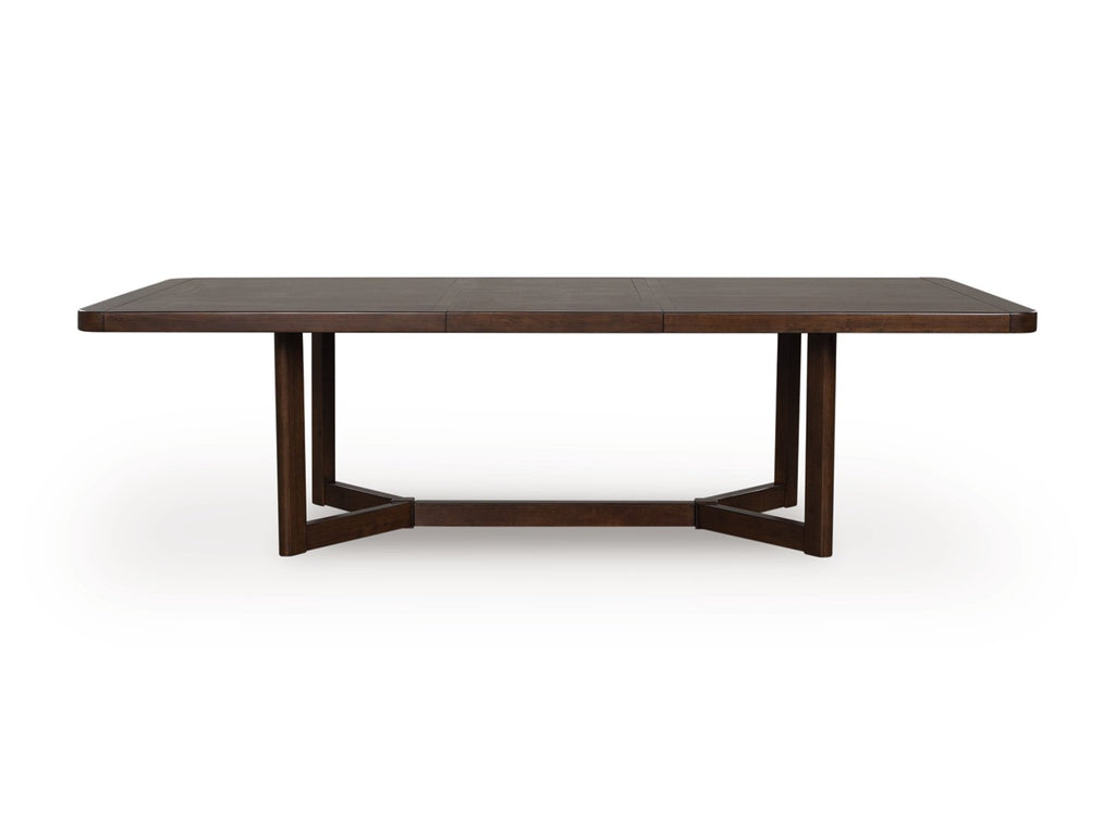 Casual contemporary styling with a decidedly modern vibe. This dining package's rich brown finish is warm and inviting, dressing your dining spot with on-trend elegance. It's a simply stunning show of great taste.