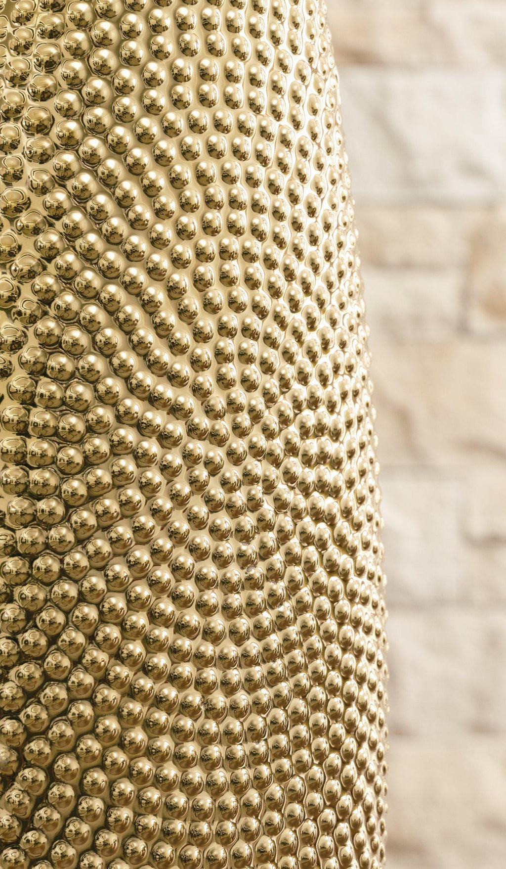 Upgrade your interiors with the elegant look of gold. This glazed goldtone ceramic vase is a beautiful way to display a floral arrangement. But it also draws attention even when sitting empty on a mantel, tabletop or other surface.