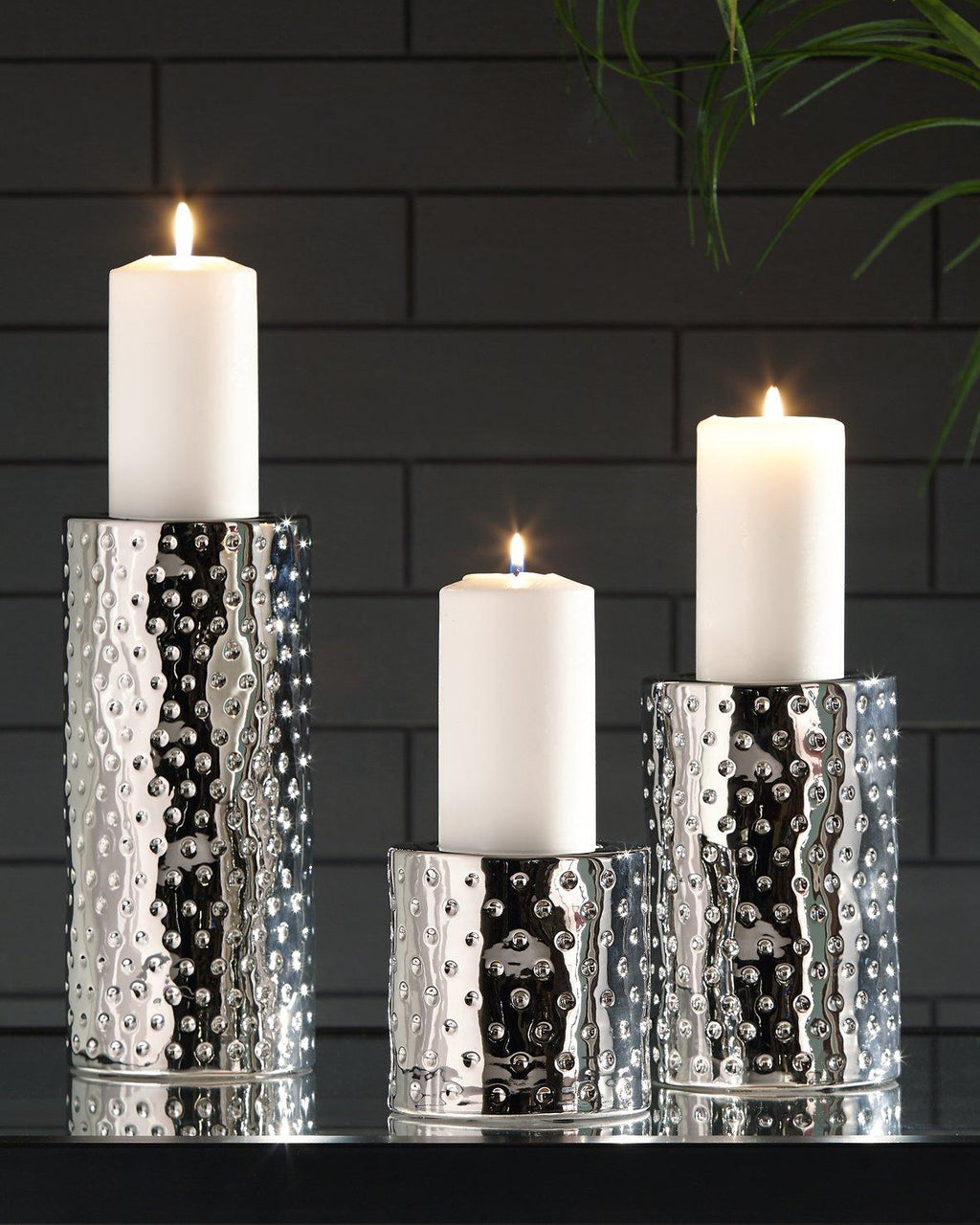 Take a stance for shapely style. Crafted of a glazed ceramic, this candle holder set shine with simply striking design and contemporary flair.