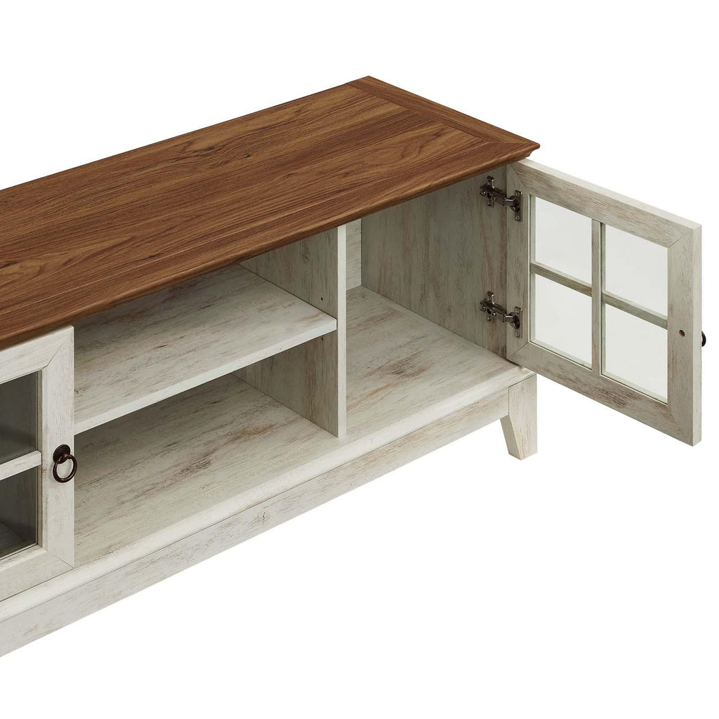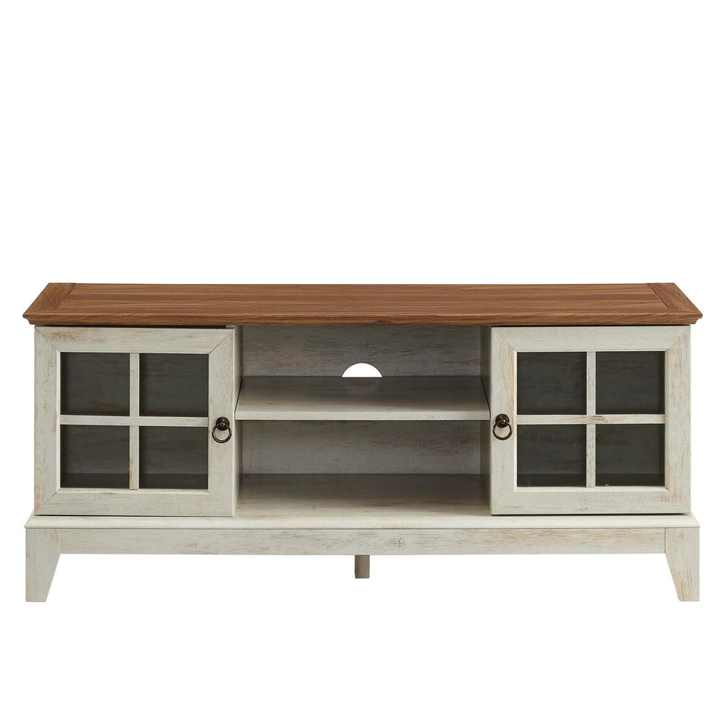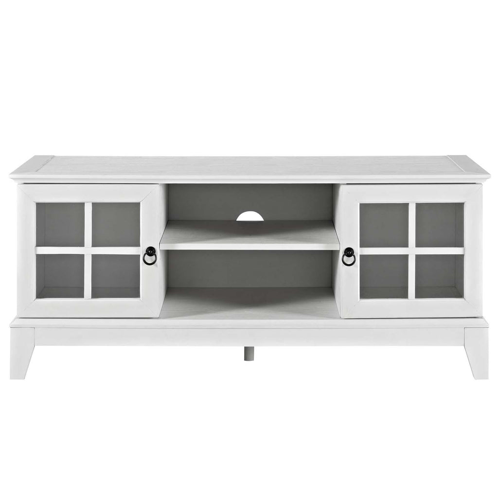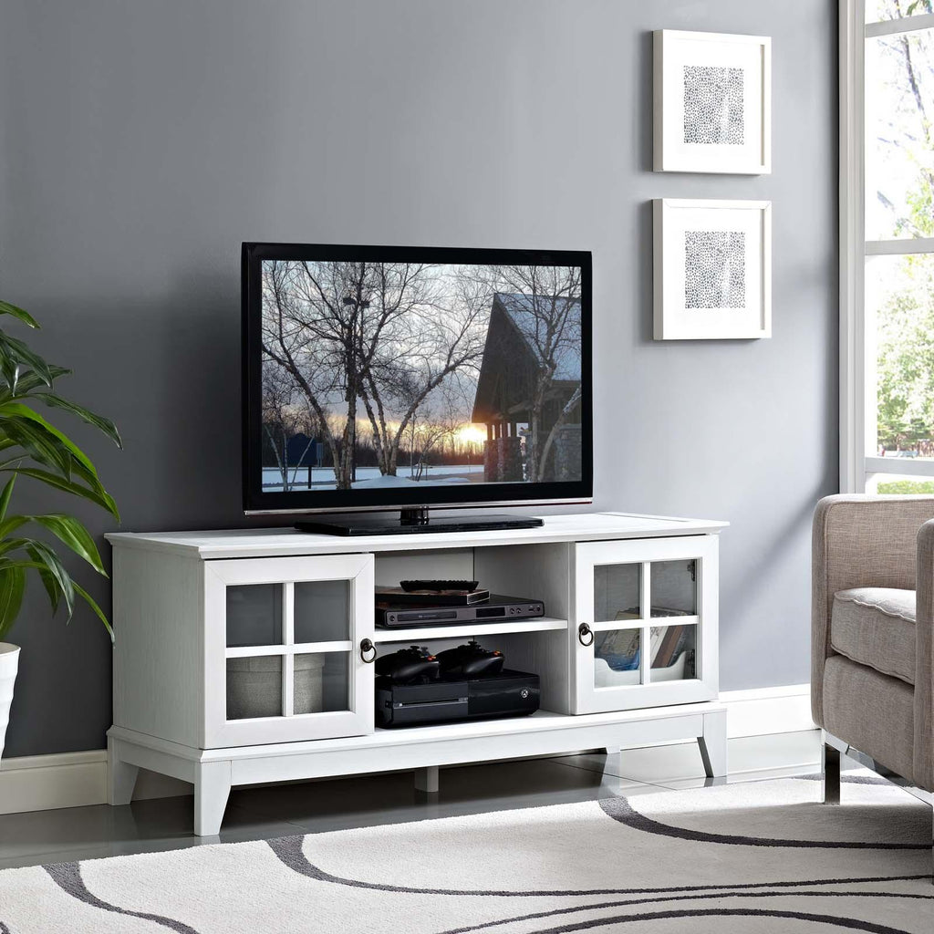 Invite the provincial charm of the Isle 47� TV Stand to transform your living space. Made of sturdy particleboard and MDF, Isle�s coastal contemporary design features dual windowpane cabinets with adjustable shelves and a large open center area for media storage. Complete with cable management and an adjustable center shelf, the contemporary design of Isle keeps your visual space clean. Isle is a refreshing lifestyle accent piece with a coastal vibe perfect for the modern home. Accommodates flat screen TVs up to 50�
