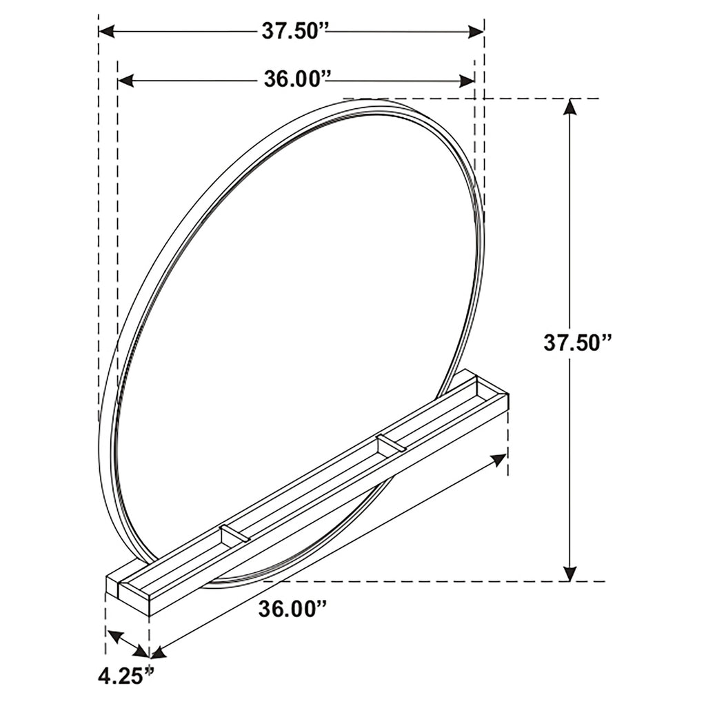 This round dresser mirror blends style and versatility with its modern organic design. Framed in a wire-brushed sand wash finish, it brings warmth and natural texture to the bedroom. A built-in felt-lined tray offers a secure spot for jewelry and accessories, keeping surfaces neat and organized. Designed for flexibility, this mirror can be mounted directly to the matching dresser or displayed independently on the wall, offering both functional elegance and contemporary appeal for any bedroom retreat._x005F_x000D_ Key Features: • Round mirror framed in sand wash wire-brushed wood for organic warmth • Felt-lined tray stores jewelry and keeps essentials neatly arranged • Mounts securely to matching Arini dresser or wall as standalone mirror • Crafted from durable rubberwood and engineered wood materials • Elegant round silhouette enhances modern and transitional bedrooms • Functional design offers beauty, storage, and display versatility