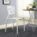 Engage your d�cor with a constellation of experience. The Astro Side Dining Chair playfully blends organic minimalism with a show stopper backrest for a compelling addition to your modern d�cor. Astro is made of sturdy polypropylene plastic and sports a slender, contoured design that provides both comfort and elegant appeal. Astro comes fully assembled and is recommended for use either as a dining chair or a creative element for a kid�s room.