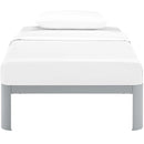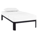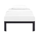 Transform your bedroom with the Corinne Bed Frame. With a slatted wood support system and sturdy steel frame, Corinne eliminates the need for a boxspring and firmly supports the various mattress types on the market such as memory foam, spring, latex, and hybrid. Featuring a sleek design with non-marking foot pads, Corinne is a solidly built bed that superbly serves the diverse needs of the modern home. Corinne holds a weight capacity of up to 1300 lbs. Mattress Not Included.