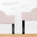 Awaken a master bedroom or guest bedroom with the energizing style of the Dawn Performance Velvet Full/Queen Headboard. Featuring an arching silhouette reminiscent of the morning sunrise, this upholstered headboard is covered in stain-resistant performance velvet that offers luxe texture and a glam deco look. This queen size headboard is padded with dense foam creating a soft, supportive place to rest and relax while sitting up in bed. With a sturdy construction and adjustable height, this velvet headboard features five mounting positions to fit almost any queen or full bed frame. Interchangeable with the Harlow, Reign, and Sutton bed frame. Assembly required.