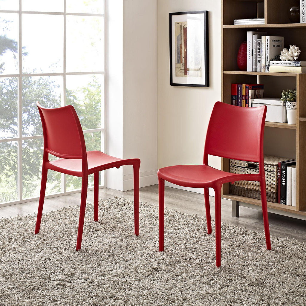 Break past drowsy d�cor with the fun and engaging Hipster Dining Side Chair. Designed with a free-flowing minimalistic style, Hipster combines the organic elements of modern design with a contoured seat and backrest for solid comfort and posture. Hipster is fully stackable, comes assembled, and is outfitted with non-marking plastic foot glides. Ready for either indoor or outdoor use, Hipster helps to take that wild ride forward while seated firmly in a chair that awesomely compliments your d�cor.