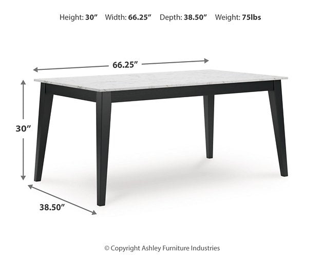 This dining table exudes modern sophistication. Finished in a sleek black wood tone, it's adorned with a stunning white faux marble tabletop. The piece serves a simply striking feast for the eyes—now your only worry is what to serve for dinner.