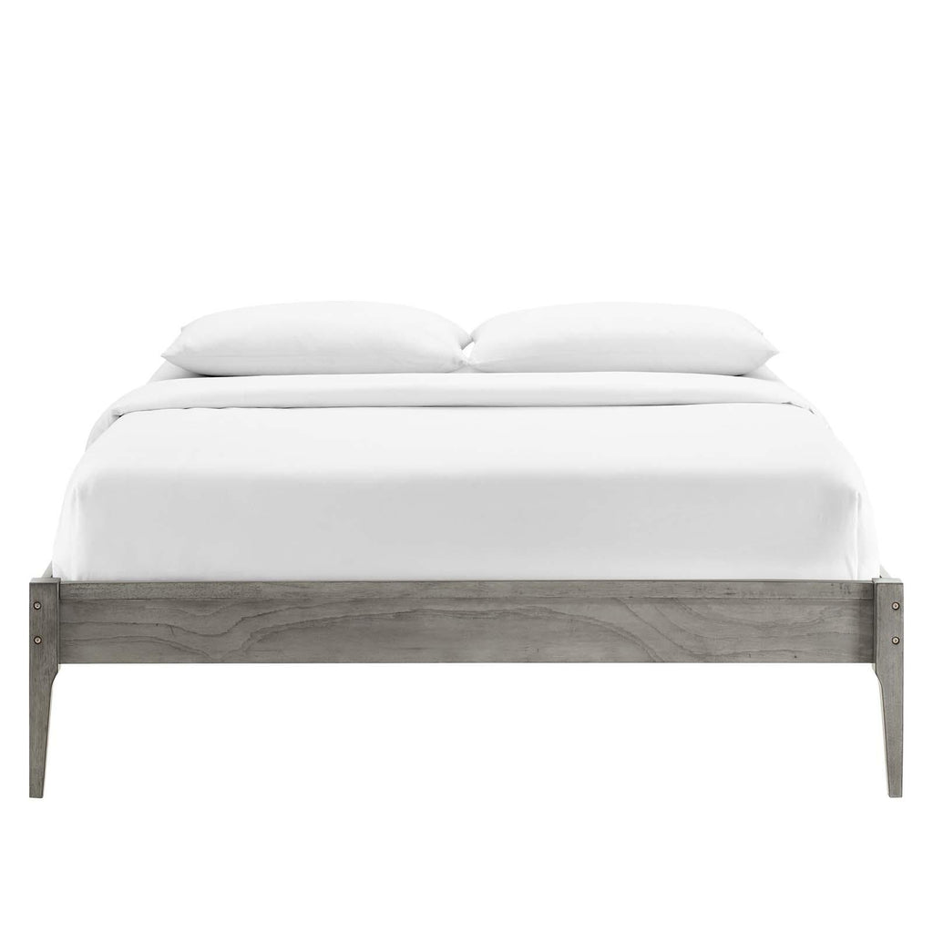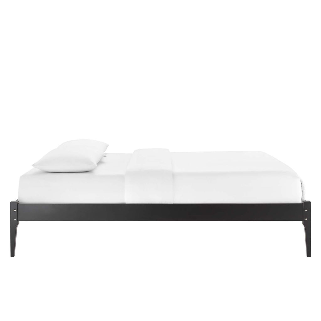 Refresh your bedroom with modern style and updated comfort with the June Full Platform Bed. Inspired by mid-century design, this full size bed frame boasts retro detail with contemporary accents and organic aesthetics to bring trending modernity to your guest bedroom or teenager's bedroom. This platform bed frame is a sturdy addition to the bedroom with a durable wood, MDF, and veneer construction and four tapered rubberwood legs. Eliminating the need for a box spring, this full bed is complete with a wood slat support system, reinforced center beam, and supporting legs that make it a lasting mattress foundation for memory foam, latex, innerspring, and hybrid mattresses. Assembly required. Full Bed Frame Weight Capacity: 601 lbs. Set Includes: One - June Full Platform Bed Frame Full Platform Bed Frame "Wood, MDF, and Veneer Construction" Wood Slat Support System Rubberwood Legs Assembly Required Weight Capacity: 601 lbs. Overall Product Dimensions: 80"L x 57.5"W x 15.5"H Headboard Dimensions: 0.5"L x 57.5"W x 6"H Floor to Bottom of Headboard: 9.5"H Side Rail Dimensions: 76"L x 57.5"W x 15"H Footboard Dimensions: 0.5"L x 57.5"W x 6"H