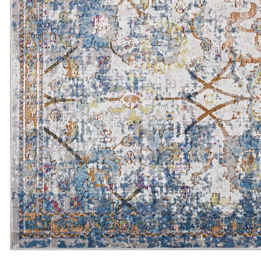 Distressed Floral Lattice Area Rug