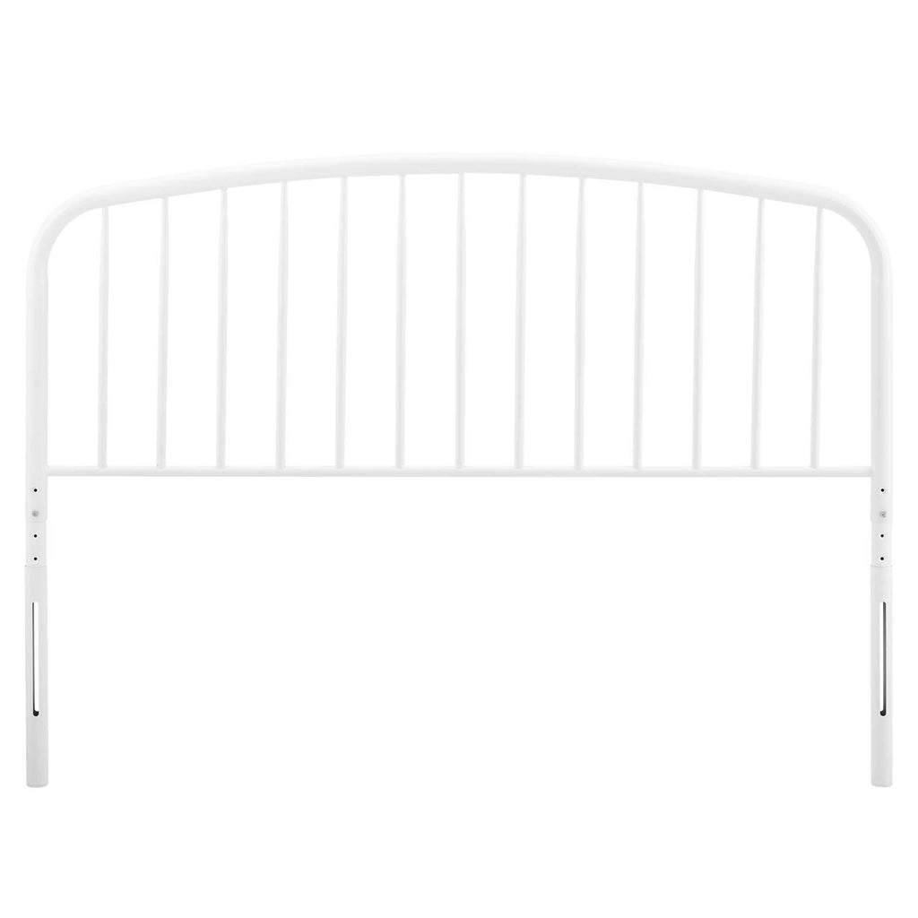Inspire new energy in your master bedroom or guest suite with the Nova Metal Queen Headboard. Putting a contemporary modern twist on a popular cottage farmhouse design, this metal headboard features a subtle arching shape and sleek spindles. This headboard for queen bed frames is crafted with powder-coated iron for a sturdy construction that lasts. Create a neutral backdrop for bedding and sham styles of all types with a queen metal headboard that is height adjustable with seven mounting positions for a customizable fit.