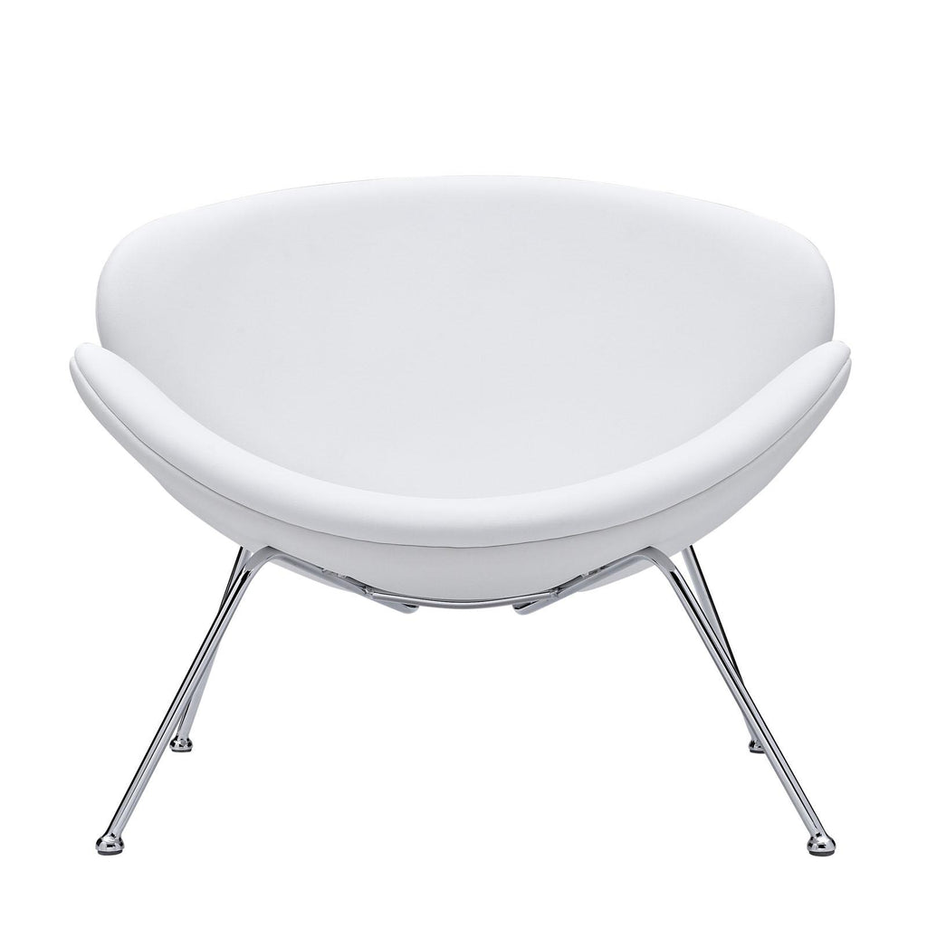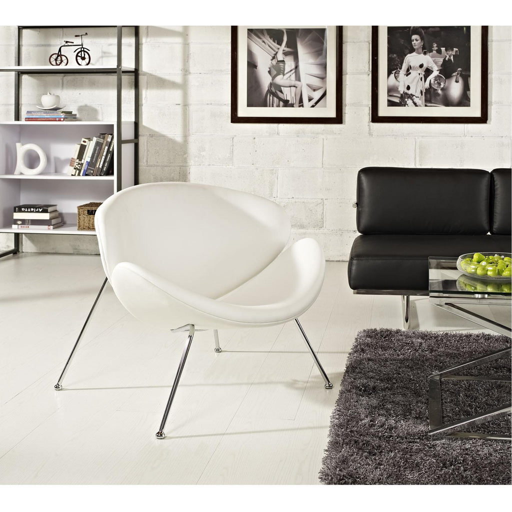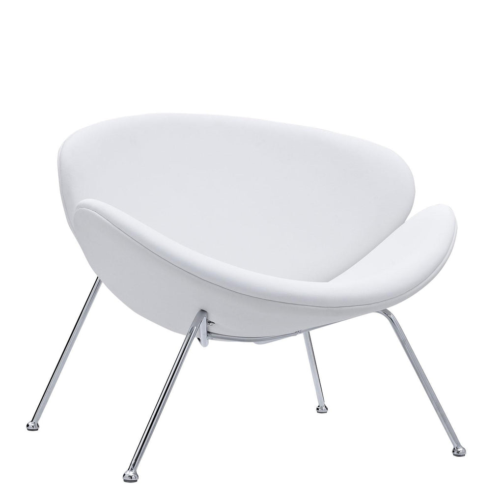 Sprawling horizons roll gently outward from this deep-seated Nutshell Lounge Chair. Unwrap the graceful duet of soft-cushioned molded "shells" positioned artistically on tube chrome legs. Achieve surprising results as you make your escape from traditional seating toward radical positioning.
