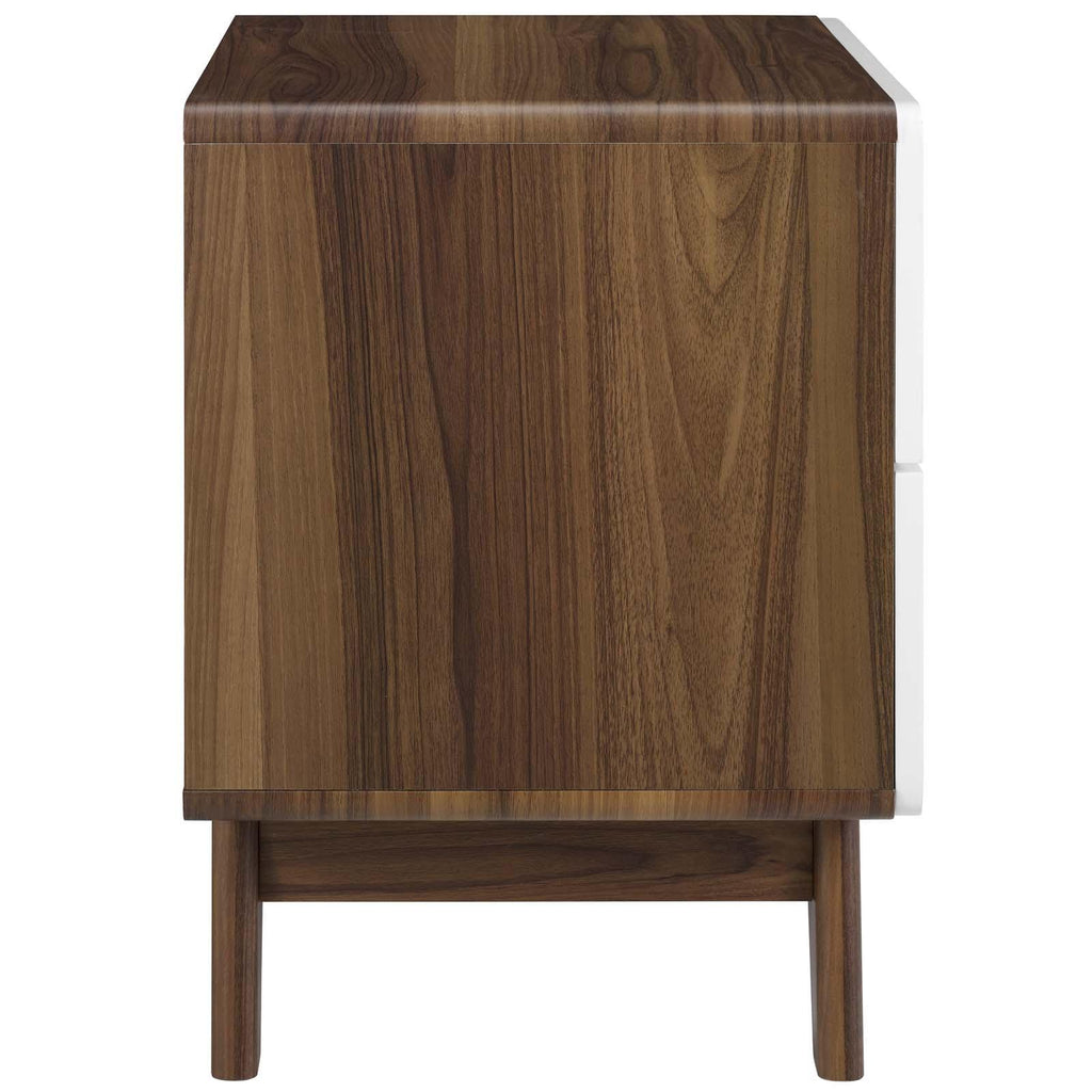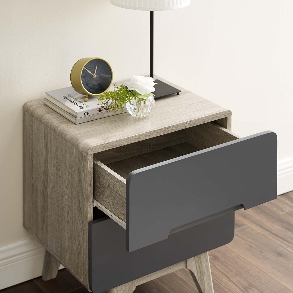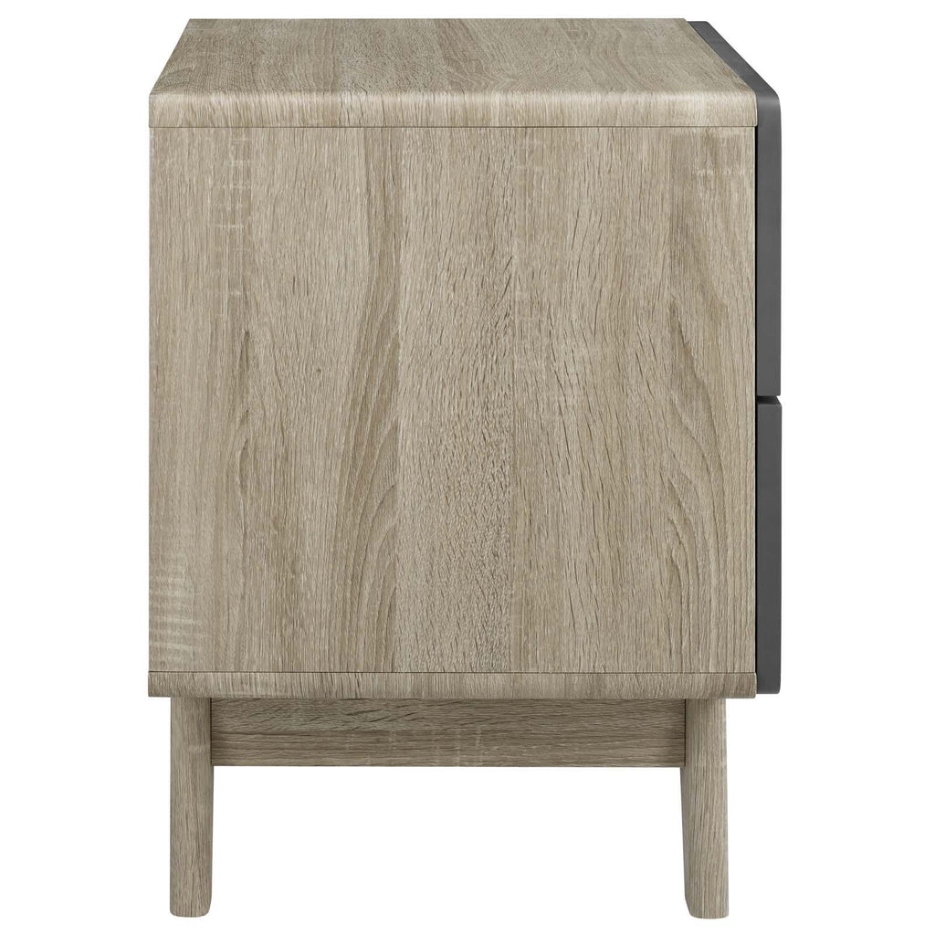Bring the iconic energy of mid-century style to your bedroom, guest suite or living room with the Origin 47� Nightstand or End Table. Crafted with durable fiberboard for reliable support, Origin comes with a splayed frame, rounded edges, linear design, wood grain laminate, and two full-extension drawers for concealed storage. The perfect complement to your bedroom decor, display and store your books, pictures, and bedtime essentials with this contemporary modern nightstand or end table.