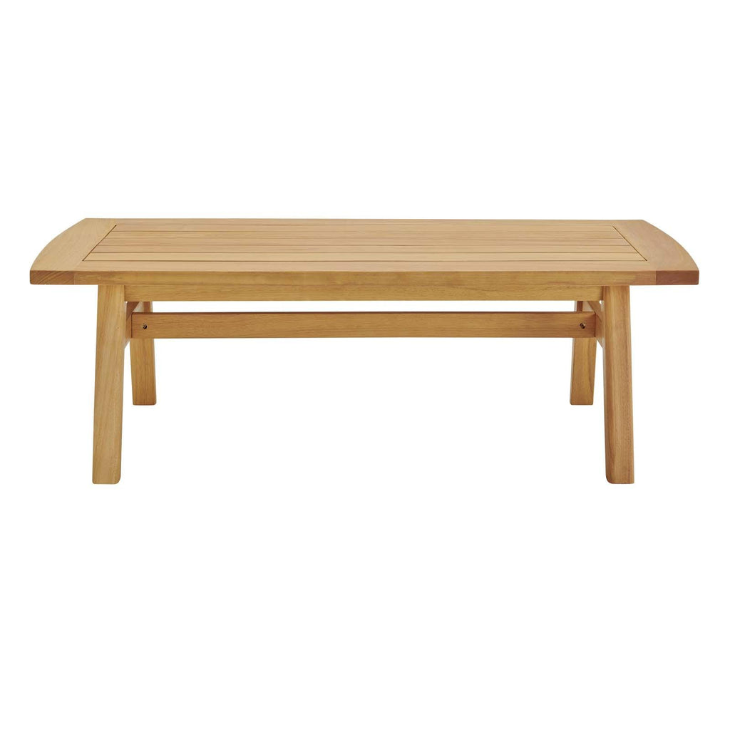 A versatile update to your patio decor, Orlean is a stylish coffee table designed to enhance any outdoor furniture assortment. Made of FSC certified eucalyptus wood, Orlean features a slatted tabletop surface and splayed and arched legs. This outdoor coffee table is a welcome addition to the backyard, deck, or patio. Table Weight Capacity: 331 lbs.