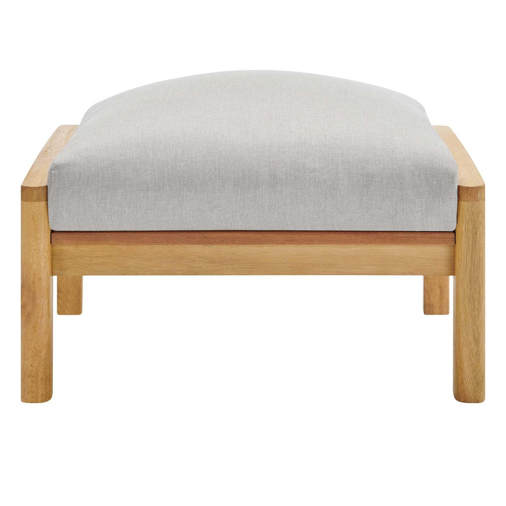 A versatile update to your patio decor, Orlean is a stylish ottoman designed to enhance any outdoor furniture assortment. Made of FSC certified eucalyptus wood, Orlean features a slatted seating surface and generously padded all-weather cushion. This extra seating surface or footrest provides exceptional comfort and is a welcome addition to the backyard, deck, or patio. Ottoman Weight Capacity: 331 lbs.