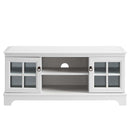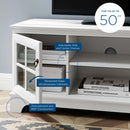 Reinvent your living space with the Pacific 47" TV Stand. Made with durable particleboard and MDF, Pacific's coastal contemporary design features dual windowpane cabinets with adjustable shelves and a large open center area for storage of media essentials. Keeping visual space clean, Pacific is complete with cable management and an adjustable center shelf to suit your media storage needs. This accent piece blends contemporary style with a coastal vibe perfect for the modern home. Accommodates flat screen TVs up to 50". Set Includes: One - Pacific 47" TV Stand Contemporary Coastal 47� TV Stand Glass Windowpane Cabinets Particleboard and MDF Construction Adjustable Side and Center Shelves Accommodates TVs Up To 50� Center Cable Management Assembly Required Overall Product Dimensions: 15.5"L x 47"W x 20.5"H Floor to Underside of Table: 4"H Table Top Thickness: 1"H Base Width: 44.5"W