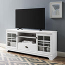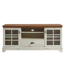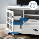 Reinvent your living space with the Pacific 59" TV Stand. Made with durable particleboard and MDF, Pacific's coastal contemporary design features dual windowpane cabinets with adjustable shelves, a center drawer, and a large open center area for storage of media essentials. Keeping visual space clean, Pacific is complete with cable management and an adjustable center shelf to suit your media storage needs. This accent piece blends contemporary style with a coastal vibe perfect for the modern home. Accommodates flat screen TVs up to 65".