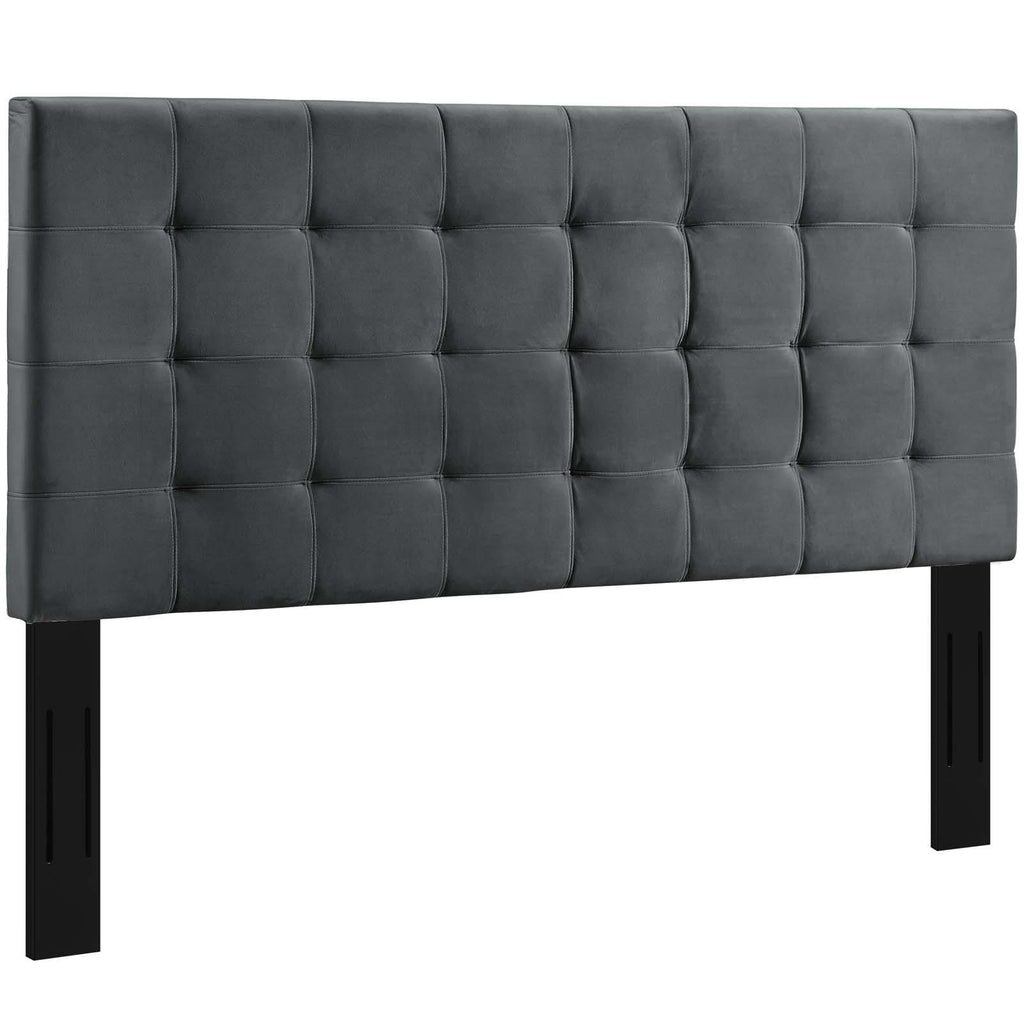 Enjoy simple elegance with the square-patterned design of Paisley. Featuring timeless biscuit tufting, Paisley updates the guest bedroom or master suite with charming appeal. A stylish full or queen headboard, Paisley is made of soft, stain resistant performance velvet covering a durable fiberboard and plywood frame with dense foam padding. Solidly constructed with extra wide black-stained wood post legs that fit either full or queen bed frames, choose from three mounting positions with this tall, padded headboard that ranges from 46 - 54 inches in height. The Paisley full or queen headboard is a lavish addition that offers quality support while reclining and relaxing.