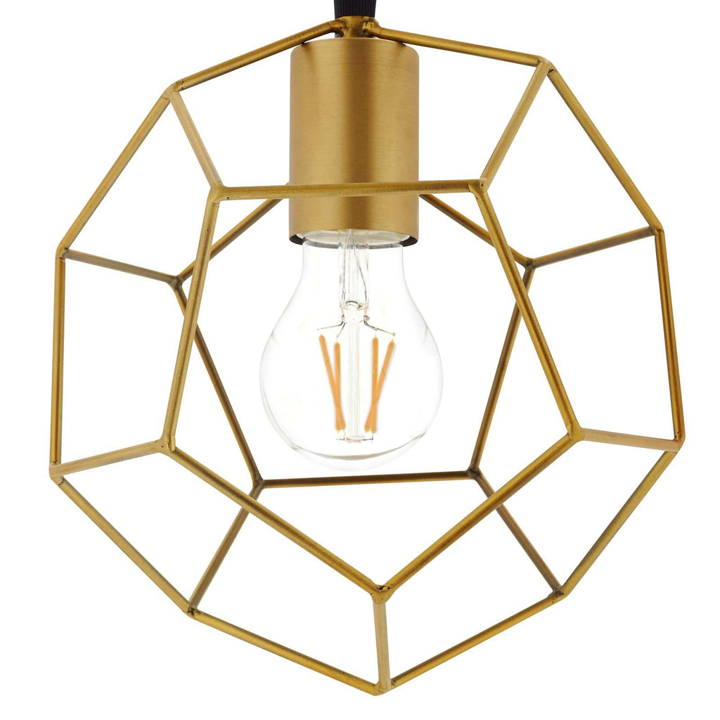 Inspire artistic exploration with the modern geometric design of Pique. Steel metal rods form open pentagonal shapes while a gold finish accentuates every angle. Illuminate your surroundings and draw attention to the intricate beauty with this strikingly simple ceiling fixture. Pique requires one E26 60W Bulb (not included). Cord is height adjustable from 11.8" - 74.8".