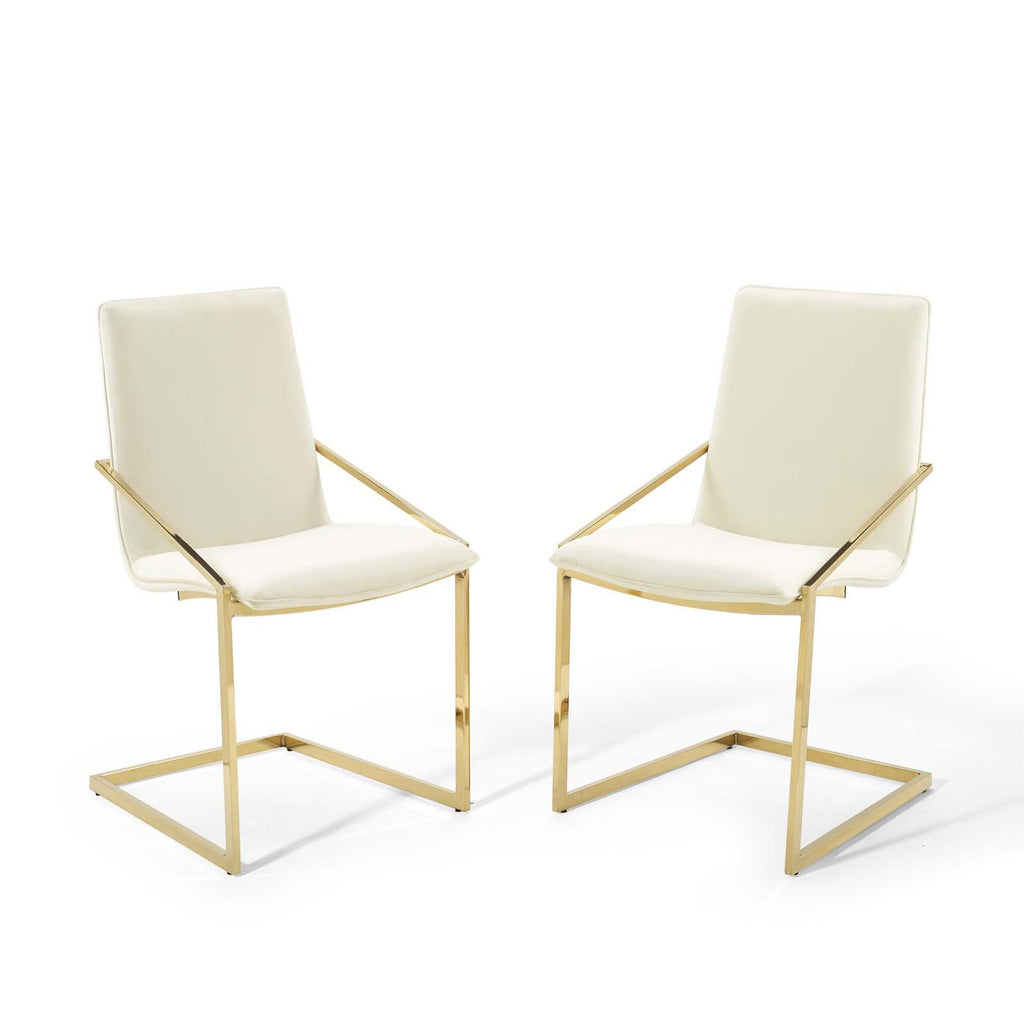 Freely flowing angles form the understated elegance of the Pitch Performance Velvet Upholstered Dining Armchair. The Pitch Dining Chair has a geometric gold stainless steel frame with non-marking foot caps, and a foam padded plywood seat. Covered in soft and stain-resistant performance velvet upholstery, the Pitch Accent Chair embraces open space for a notable modern chair that stands out amongst your dining room decor. Chair Weight Capacity: 330 lbs.