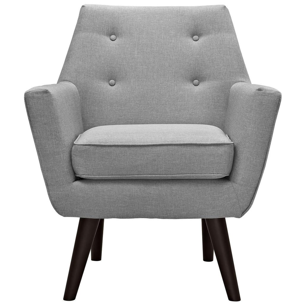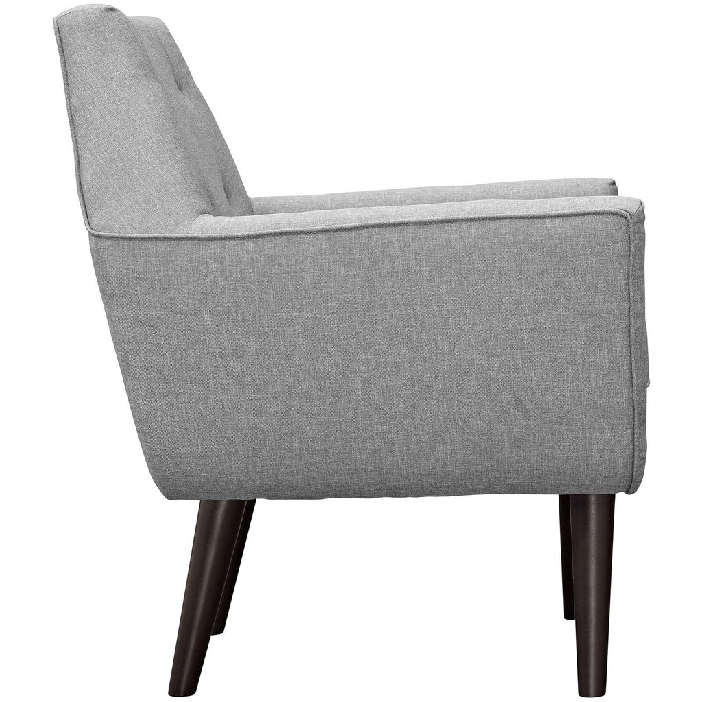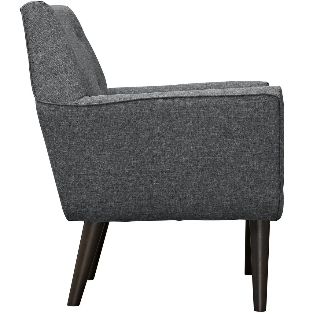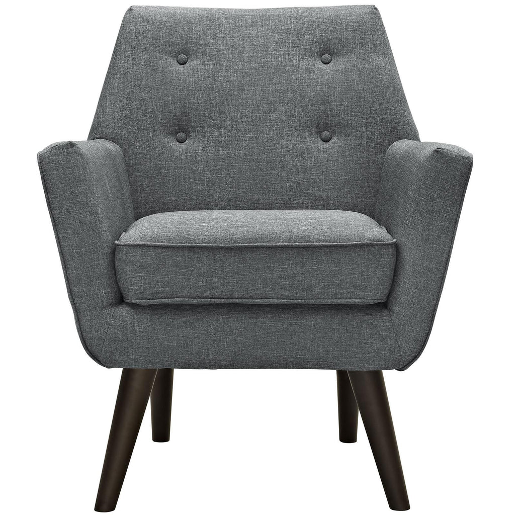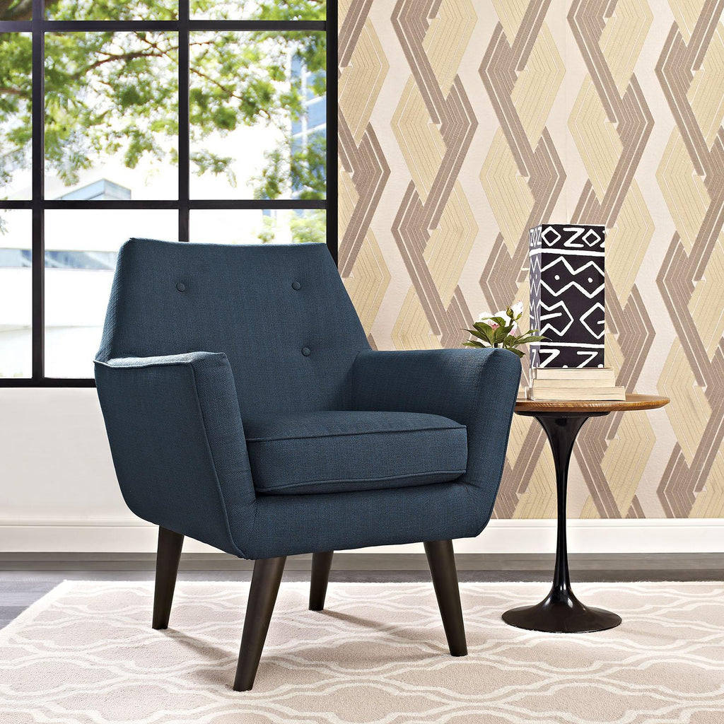 Engage your sensibilities with the organically shaped Posit armchair. Posit is gracefully positioned on solid espresso stained dowel legs designed according to mid-century design practices. Whether settling in with coffee and brunch, or entering a spirited discussion with friends, Posit�s polyester upholstery, two rows of finely stitched back seat buttons, and organic form ensure an eye-catching appeal at every turn. Bring depth and modernity to your contemporary living room or lounge area with the Posit armchair.