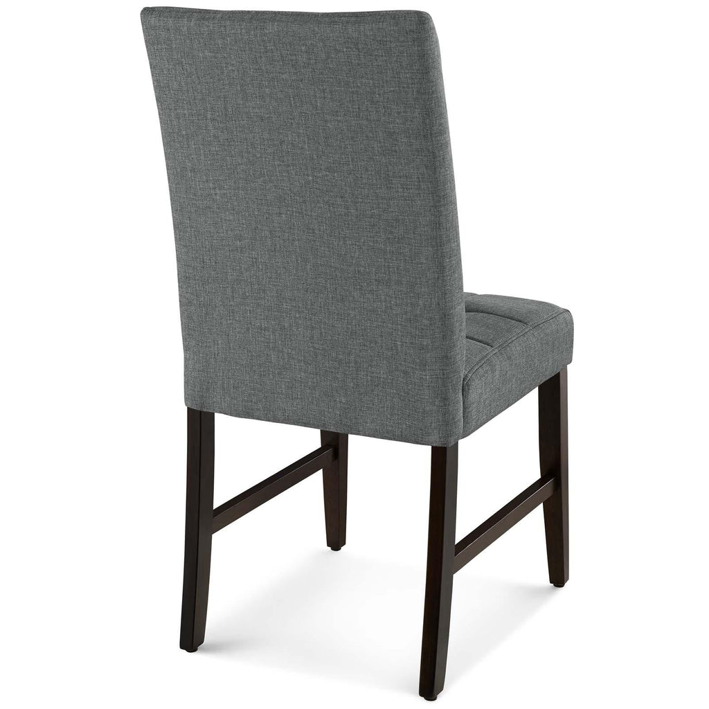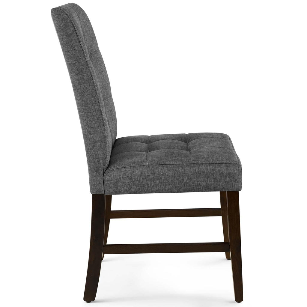 Experience the subtle mastery of the Promulgate Parsons Dining Side Chair Set of 2. Elegant biscuit tufting creates a square pattern adding visual depth and classy appeal. Promulgate features a densely padded foam seat covered in soft and durable polyester upholstery and bolstered with a sinuous spring support system. Supported by a solid wood frame and side stretchers, Promulgate rests securely on four rubberwood legs with non-marking foot caps in this timeless fabric dining chair for the modern home or apartment. Chair Weight Capacity: 331 pounds each