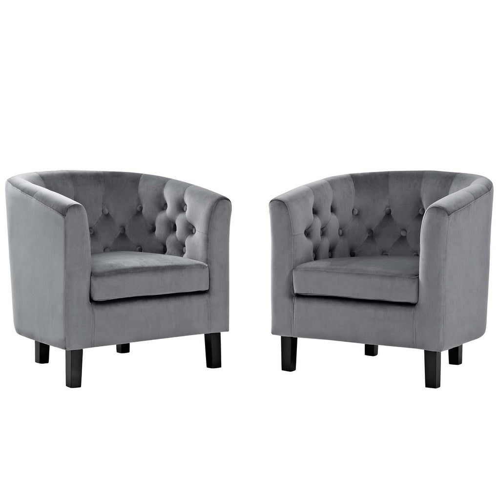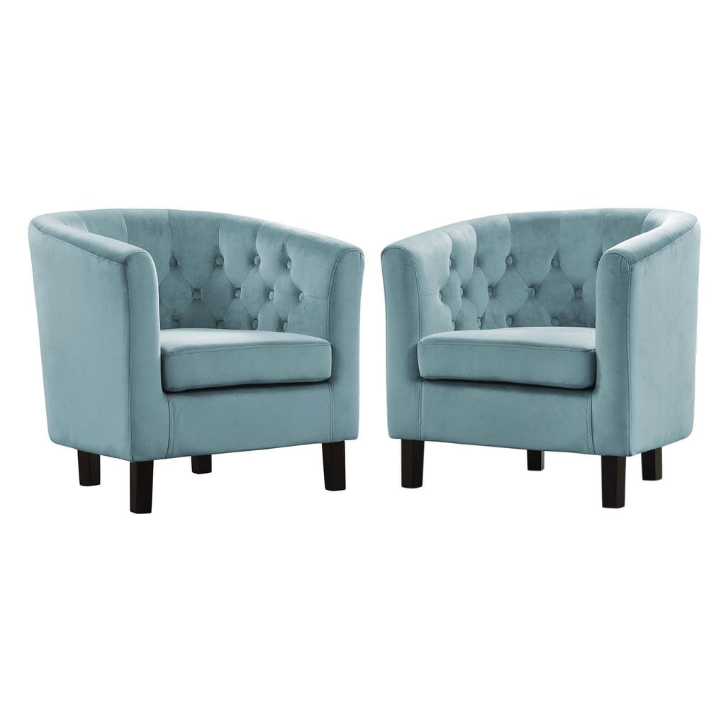 Intrinsically luxurious, Prospect Button Tufted Performance Velvet Upholstered Sofa Furniture Set is a striking throwback to the classic Chesterfield design, while delivering an engaging modern look filled with passion and drive. Button tufting and sweeping curves highlight the dense foam padding and soft, stain-resistant performance velvet upholstery to form a contemporary living room furniture set that all will be drawn to. The cozy living and lounge room Prospect Button Tufted Performance Velvet Upholstered Sofa Furniture Set is solidly constructed from wood with espresso stained wood legs and non-marking foot caps to protect flooring integrity. Set Includes: Two - Prospect Armchair Chesterfield Style Armchair Performance Velvet Upholstery Espresso Stained Wood Legs Dense Foam Padded Seat Deep Button Tufting Non-Marking Foot Caps Assembly Required Overall Armchair Dimensions: 30.5"L x 28.5"W x 29.5"H Seat Dimensions: 22"L x 20.5"W x 17"H Floor to Top of Armrest: 25.5"H Backrest Dimensions: 4"L x 12.5"H Cushion Thichkness: 4.5"H Armrest Width: 4"W Overall Product Dimensions: 30.5"L x 57"W x 29.5"H