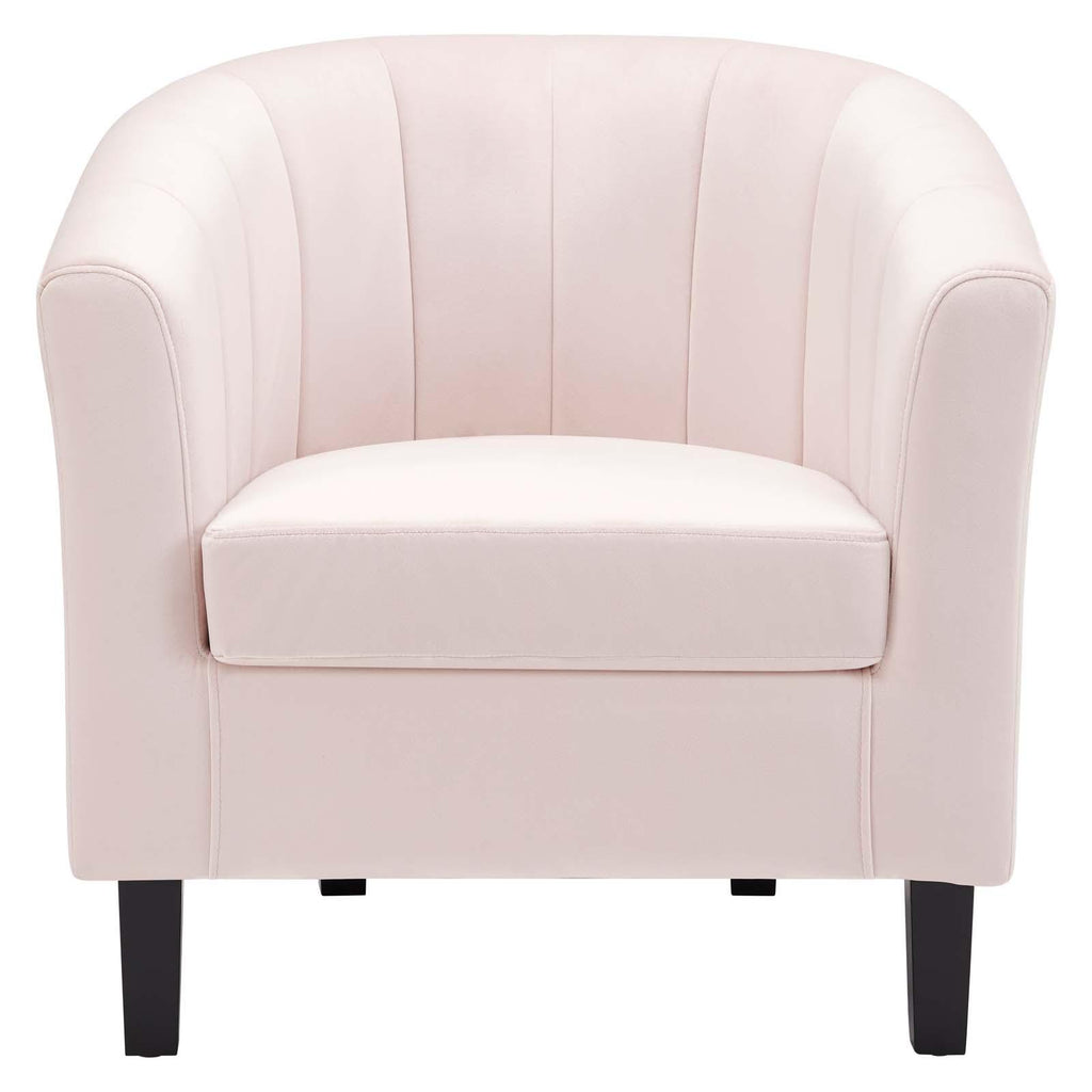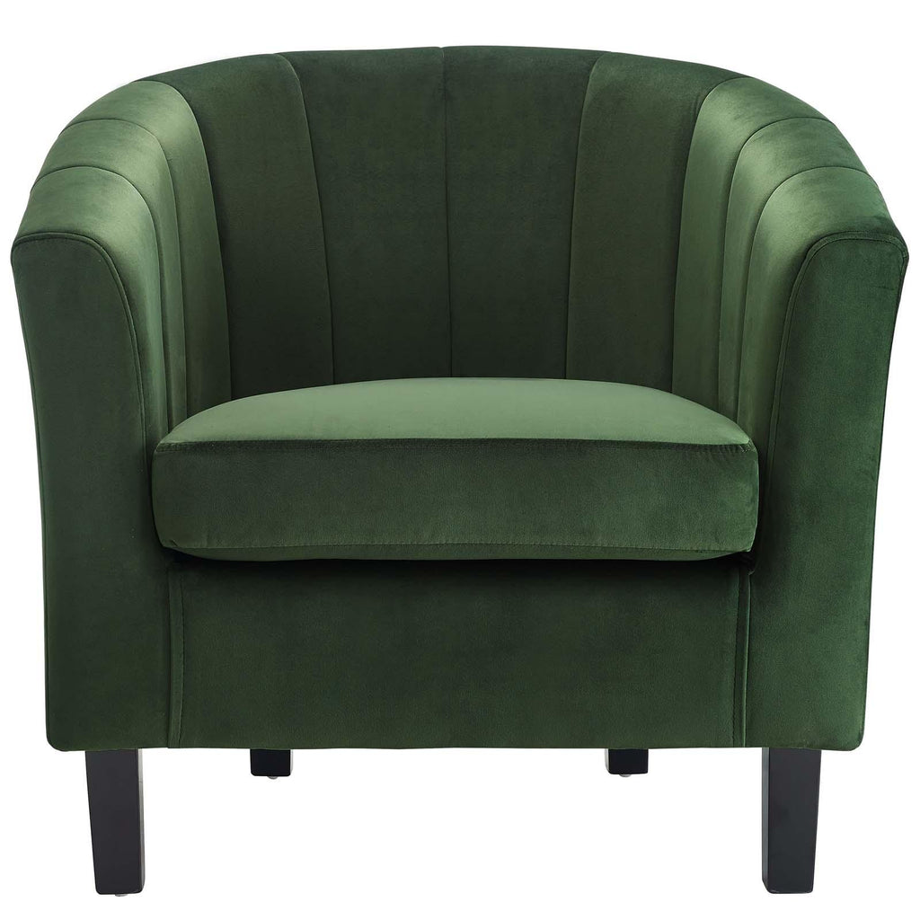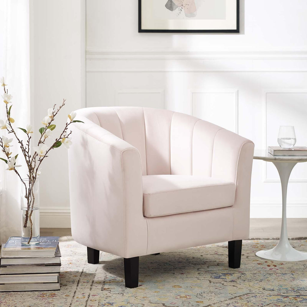 A fresh outlook on a familiar classic, Prospect Performance Velvet Armchair brings intrinsic luxury to your living space. This barrel back armchair comes upholstered in stain-resistant performance velvet fabric, and boasts chic channel tufting, updating the Chesterfield-inspired profile with retro modern design elements. The densely padded removable seat and backrest grant approachable comfort that beckons guests to sit and stay a while. Maximum Weight Capacity: 331 lbs.