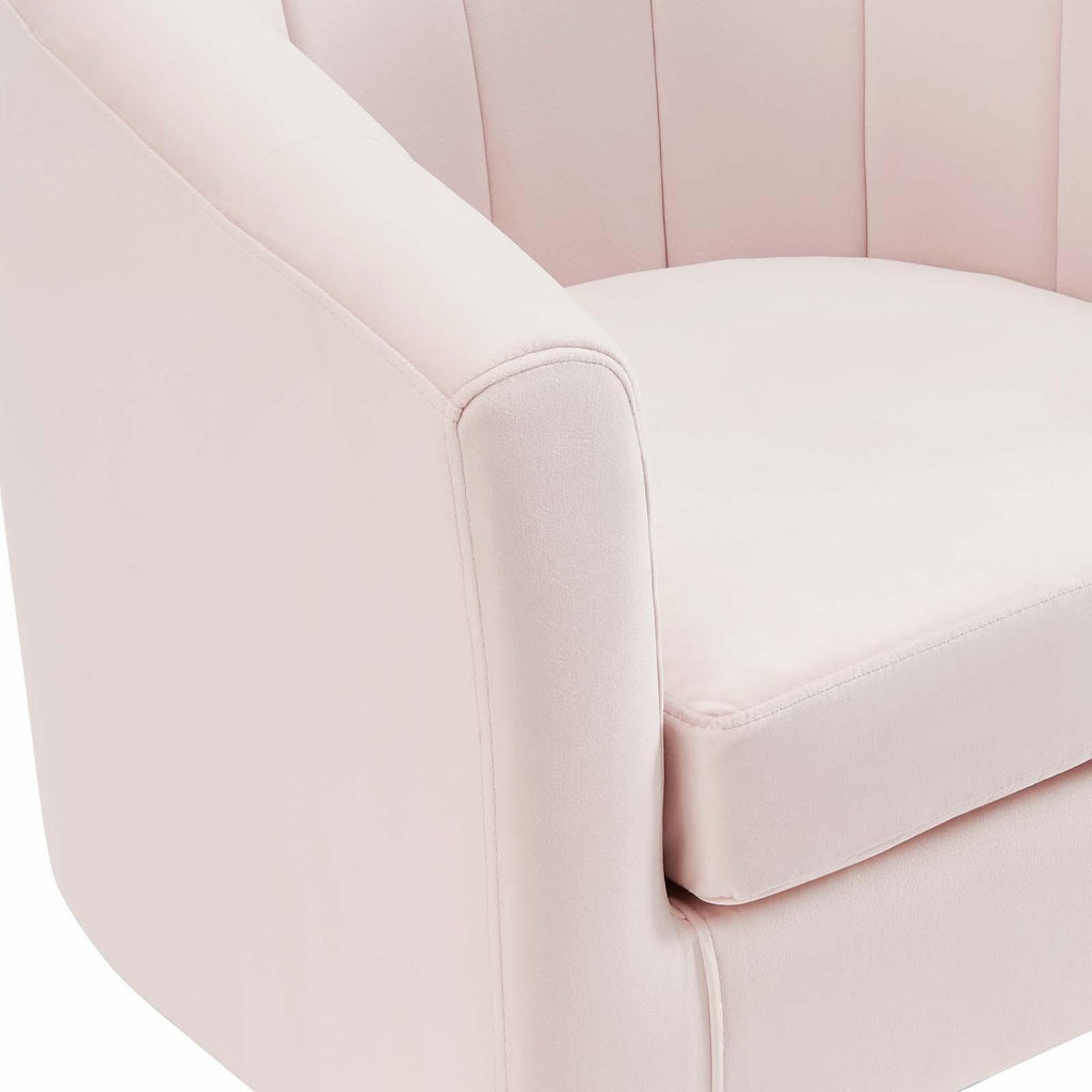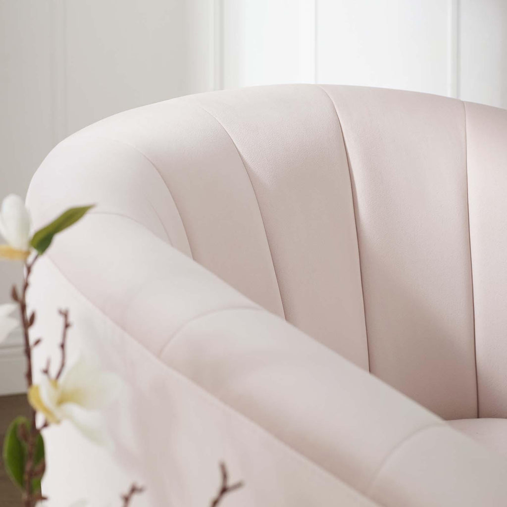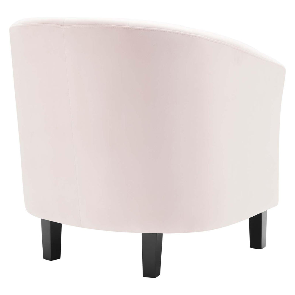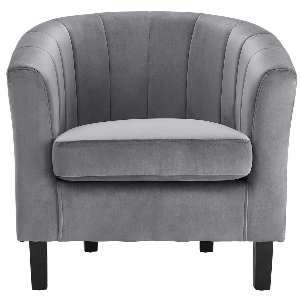 A fresh outlook on a familiar classic, Prospect Performance Velvet Armchair brings intrinsic luxury to your living space. This barrel back armchair comes upholstered in stain-resistant performance velvet fabric, and boasts chic channel tufting, updating the Chesterfield-inspired profile with retro modern design elements. The densely padded removable seat and backrest grant approachable comfort that beckons guests to sit and stay a while. Maximum Weight Capacity: 331 lbs.