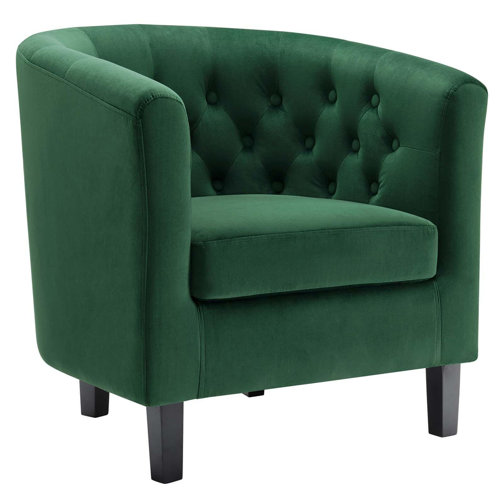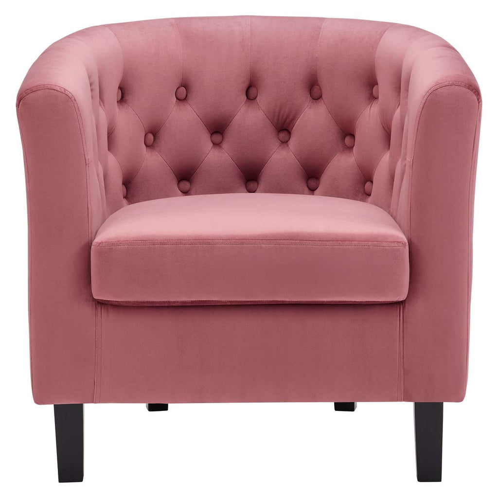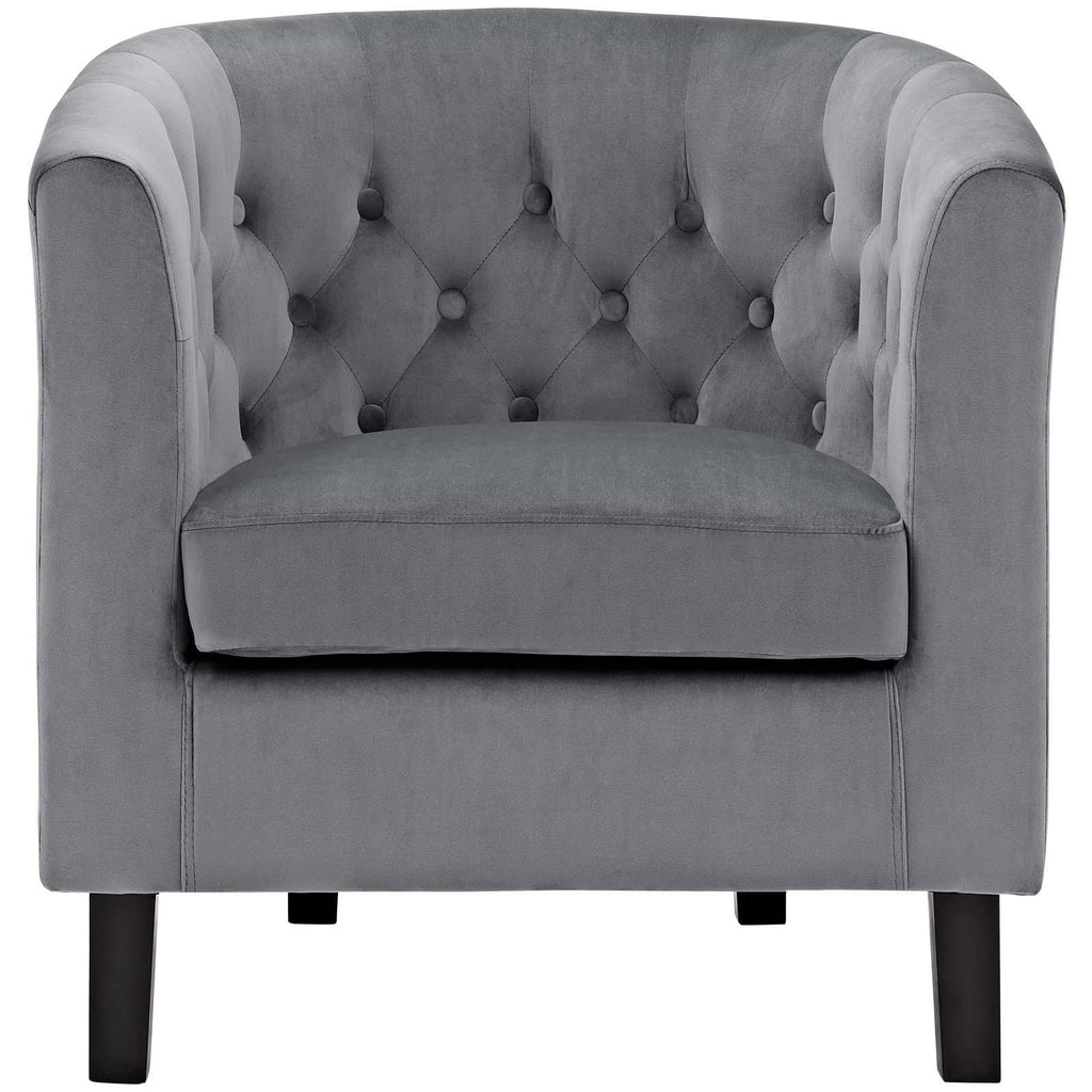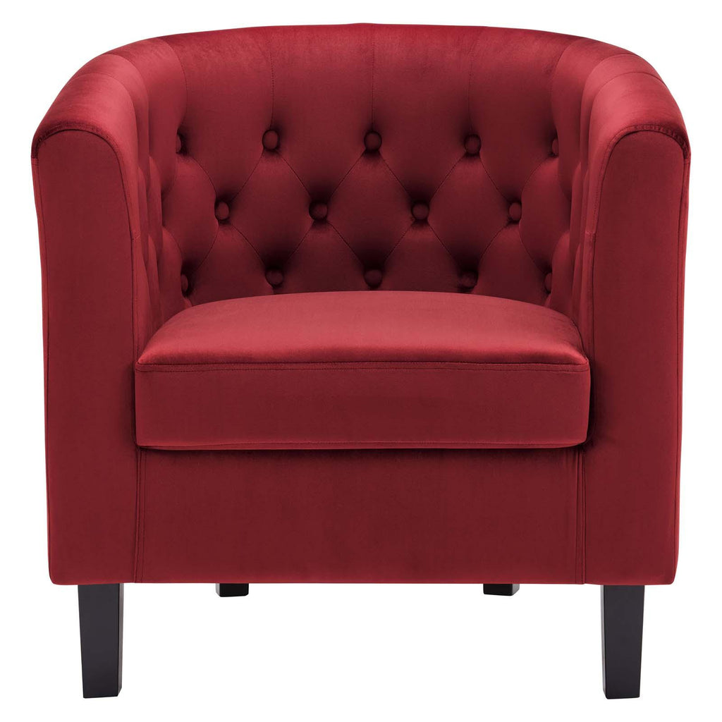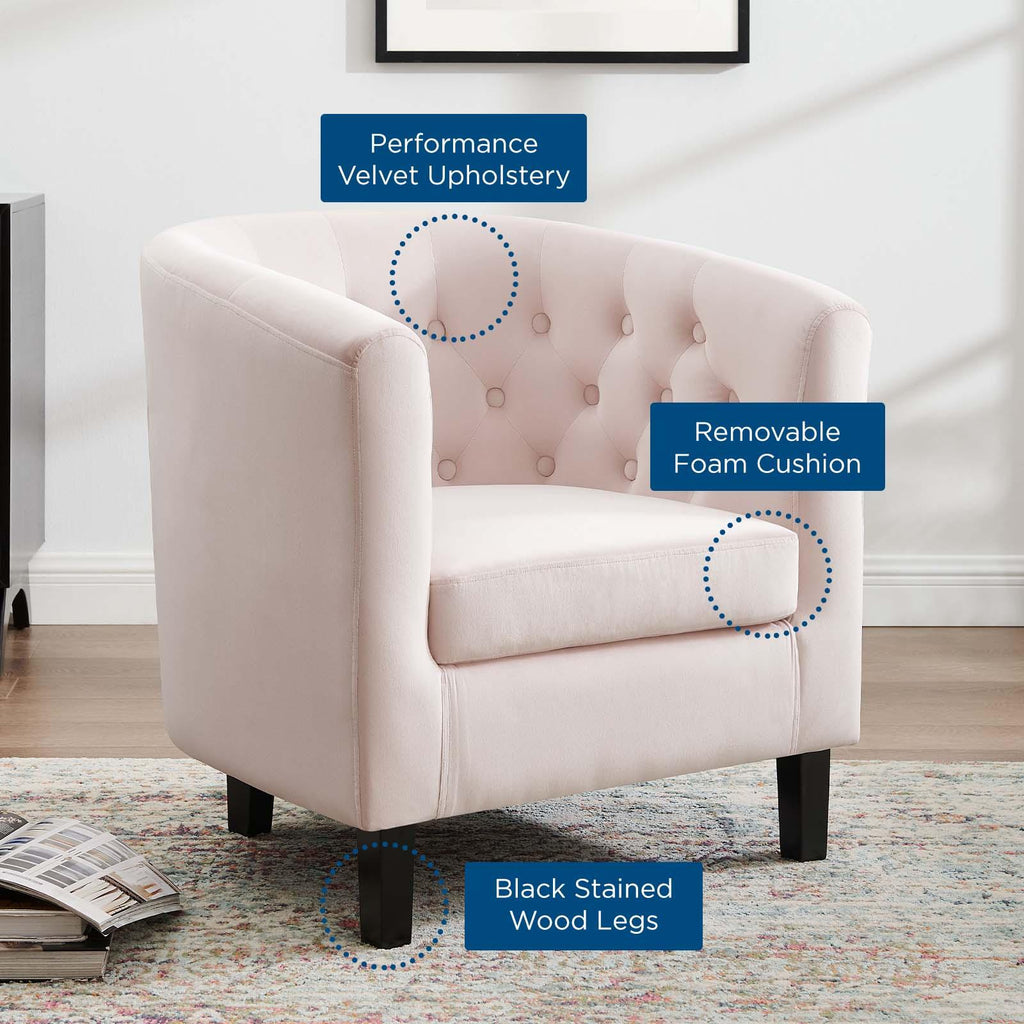Intrinsically luxurious, Prospect is a throwback to the classic Chesterfield design, while delivering an engaging modern look filled with passion and drive. Button tufting and sweeping curves blend to form a contemporary lounge piece that all will be drawn to. This cozy armchair with espresso stained wood legs and non-marking foot caps features comfortable foam padding and soft, stain-resistant performance velvet polyester upholstery.