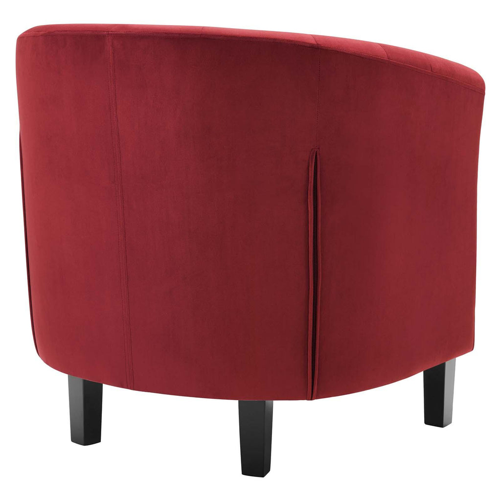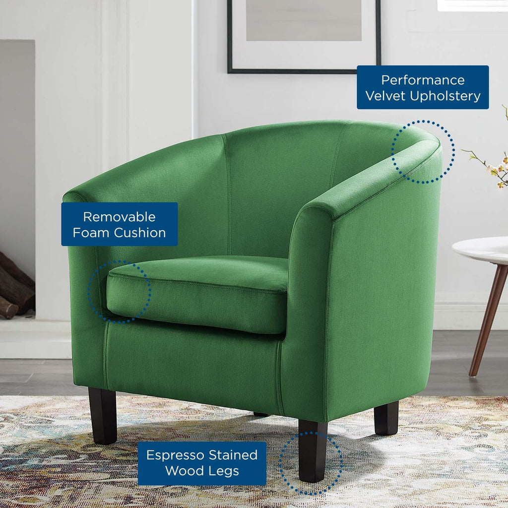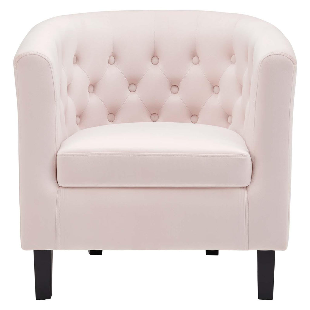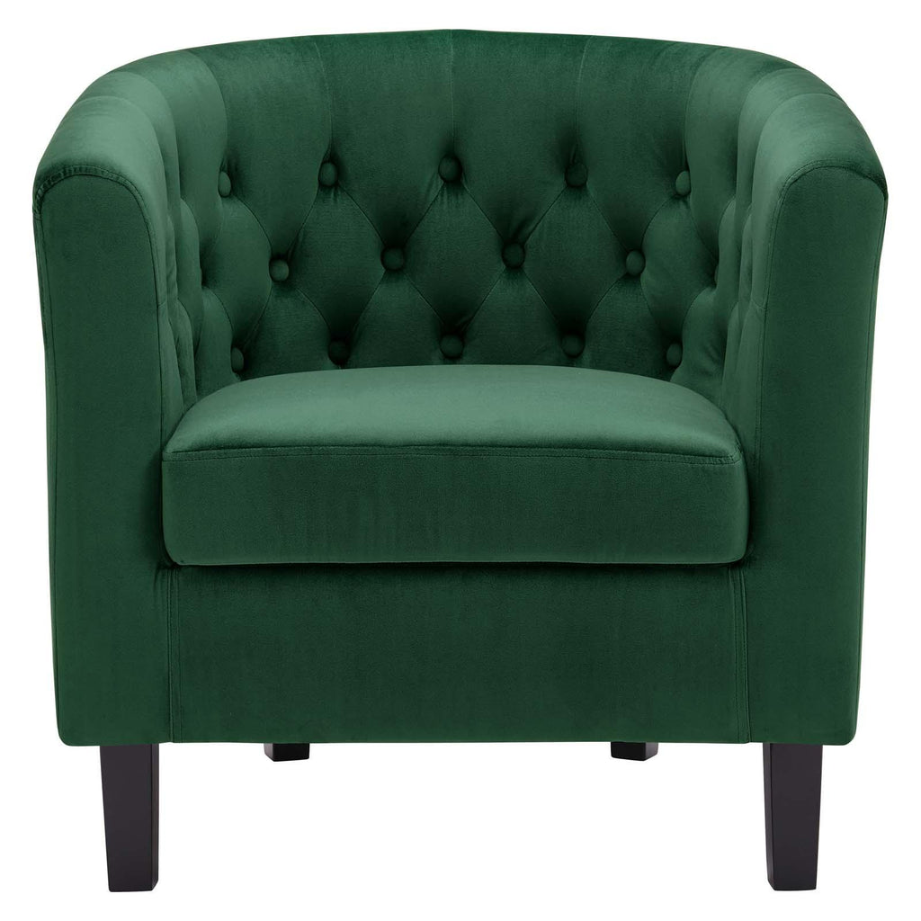 Intrinsically luxurious, Prospect is a throwback to the classic Chesterfield design, while delivering an engaging modern look filled with passion and drive. Button tufting and sweeping curves blend to form a contemporary lounge piece that all will be drawn to. This cozy armchair with espresso stained wood legs and non-marking foot caps features comfortable foam padding and soft, stain-resistant performance velvet polyester upholstery.