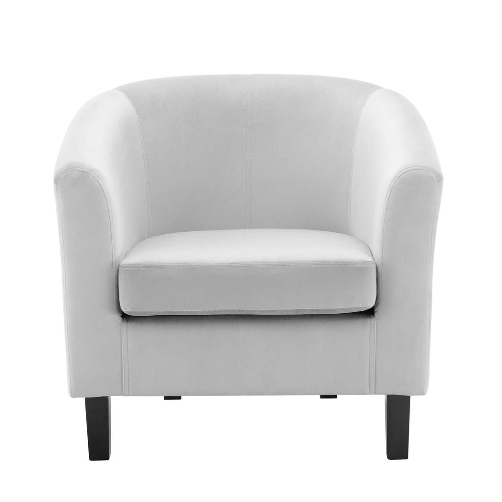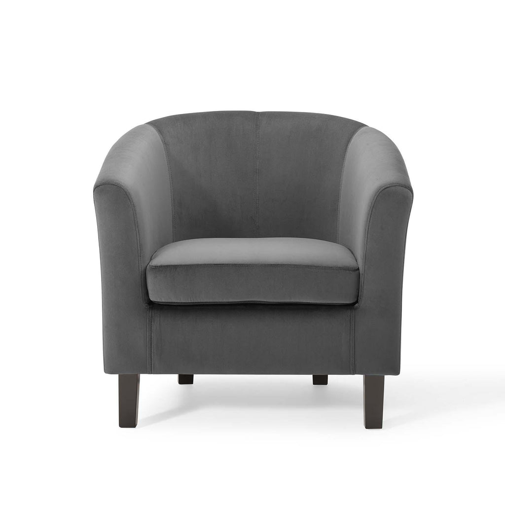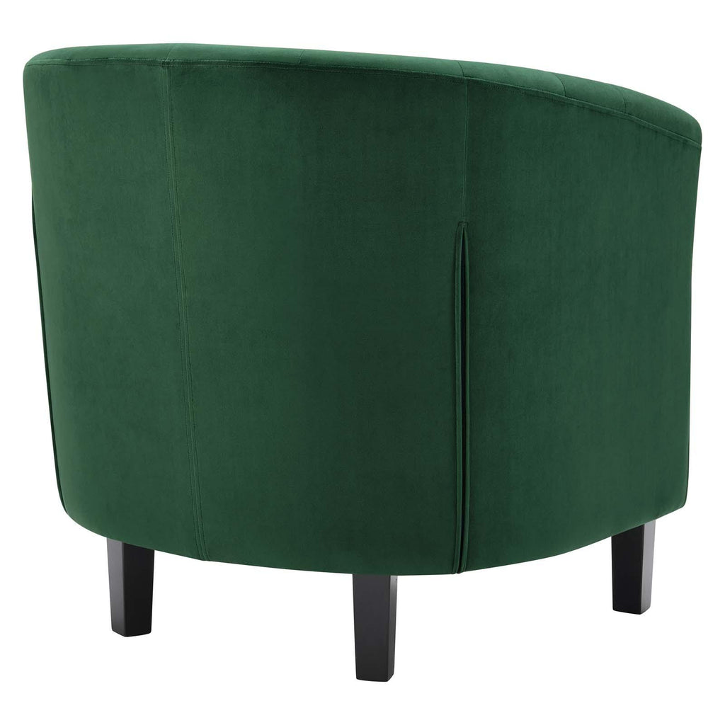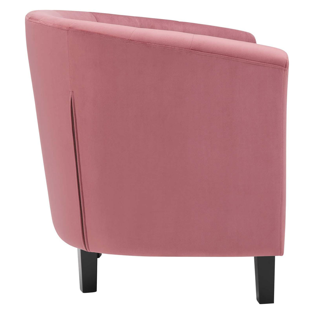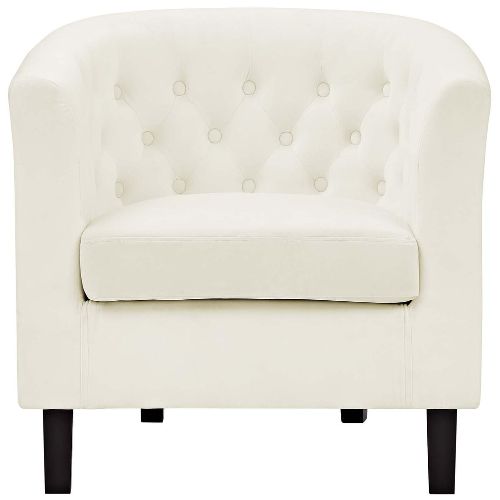 Intrinsically luxurious, Prospect is a throwback to the classic Chesterfield design, while delivering an engaging modern look filled with passion and drive. Button tufting and sweeping curves blend to form a contemporary lounge piece that all will be drawn to. This cozy armchair with espresso stained wood legs and non-marking foot caps features comfortable foam padding and soft, stain-resistant performance velvet polyester upholstery.