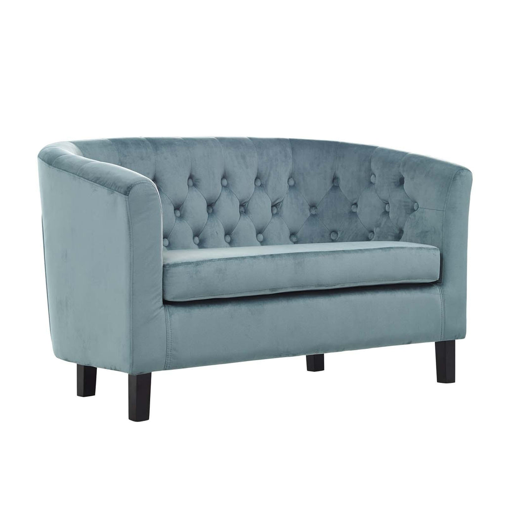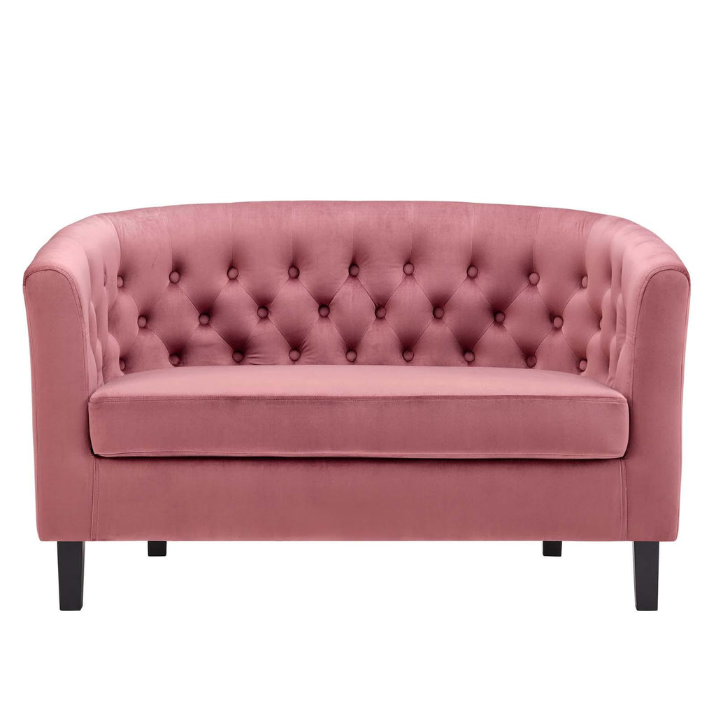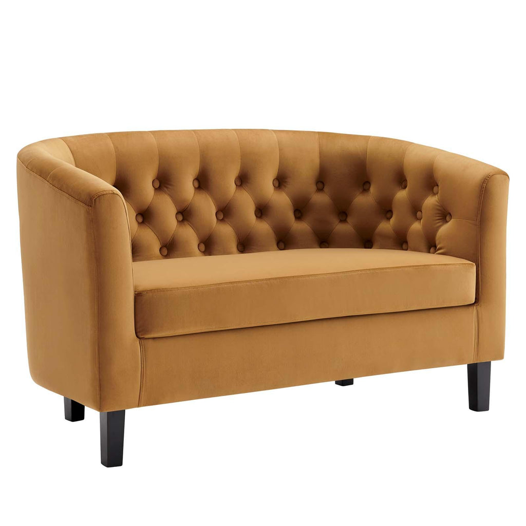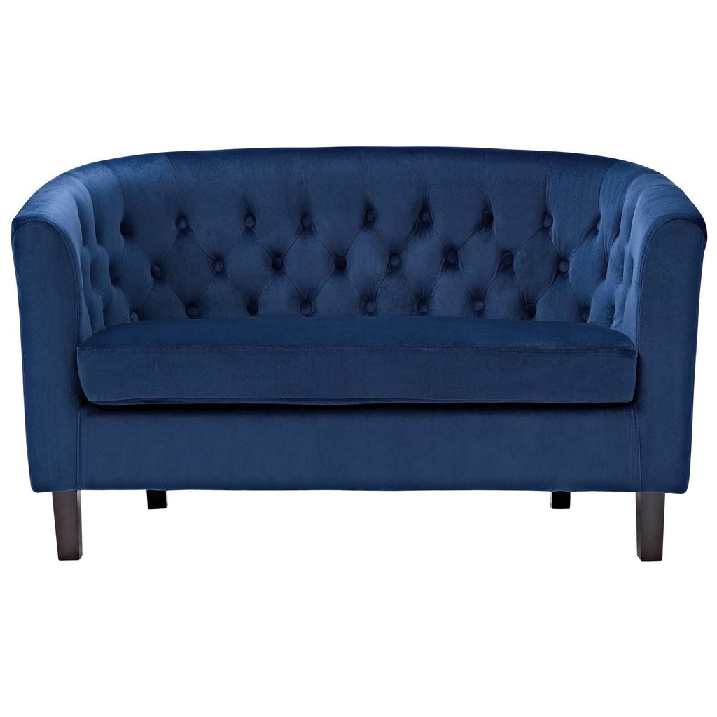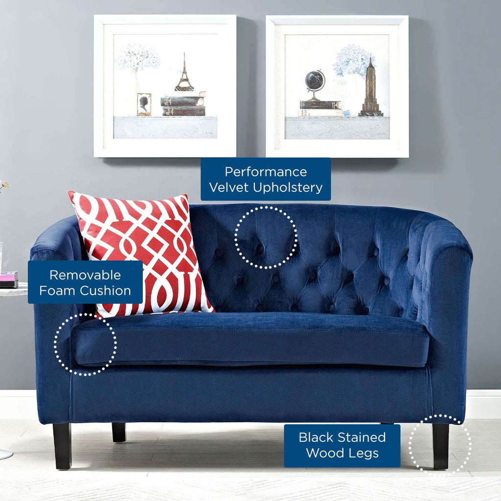 Intrinsically luxurious, Prospect Performance Velvet Loveseat is a throwback to the classic Chesterfield design, while delivering an engaging modern look filled with passion and drive. Button tufting and sweeping curves blend to form a contemporary lounge piece that all will be drawn to. This cozy loveseat with espresso stained wood legs and non-marking foot caps features comfortable foam padding and a soft, stain-resistant performance velvet polyester upholstery.