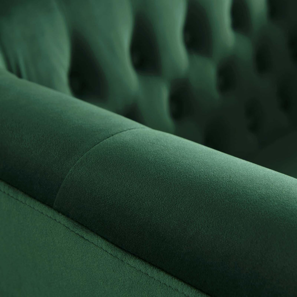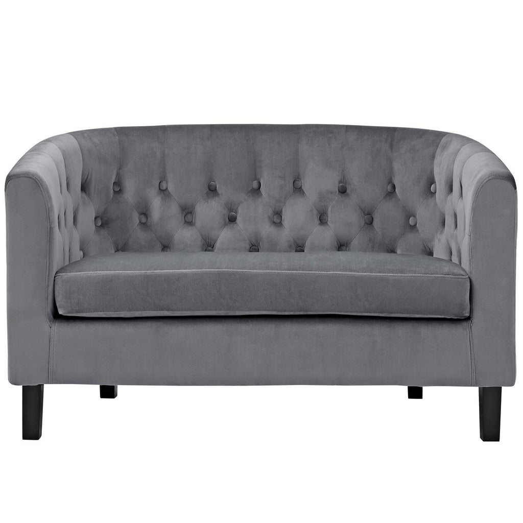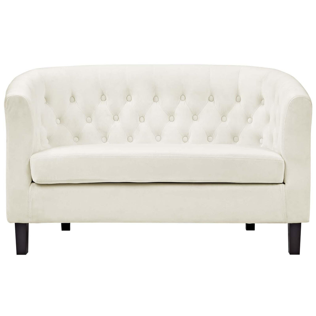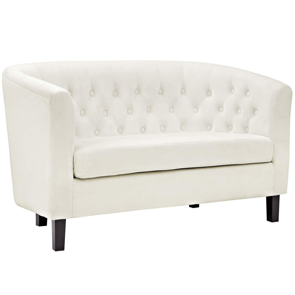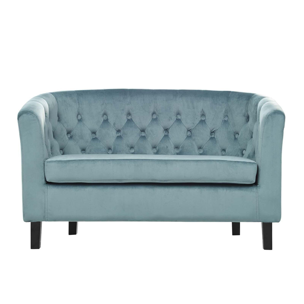 Intrinsically luxurious, Prospect Performance Velvet Loveseat is a throwback to the classic Chesterfield design, while delivering an engaging modern look filled with passion and drive. Button tufting and sweeping curves blend to form a contemporary lounge piece that all will be drawn to. This cozy loveseat with espresso stained wood legs and non-marking foot caps features comfortable foam padding and a soft, stain-resistant performance velvet polyester upholstery.