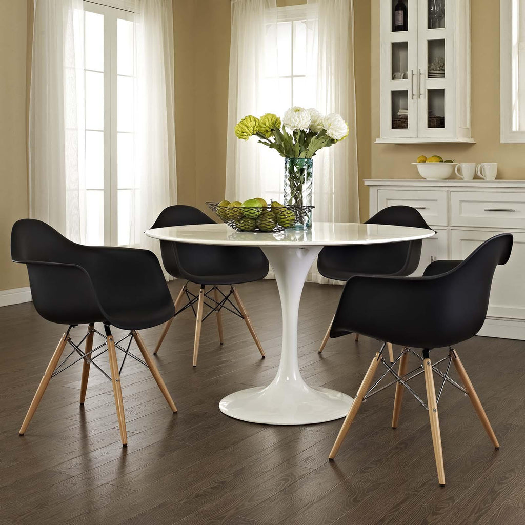 Wood Pyramid Armchairs are crafted out of molded plastic for the seat and a solid wood "pyramid" base. Comfortable and versatile, this chair can be used to d�corate any space.
