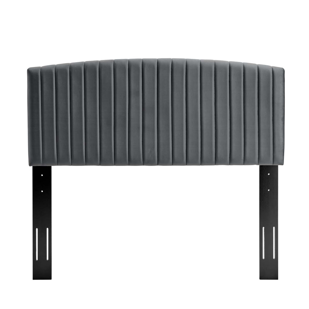 Elegant decor requires tasteful updates like the Rebecca Full/Queen Channel Tufted Performance Velvet Upholstered Headboard. Subtly arched, this full or queen size headboard brings a luxurious presence to your bedroom with its channel tufting. Rebecca is made from solid wood and particleboard. Covered in soft, stain-resistant performance velvet polyester upholstery, the Rebecca Full/Queen Headboard is both practical and graceful. Ideally suited for guest rooms as well as teen and master bedrooms, the Rebecca Queen/Full Headboard is padded with dense foam for luxe comfort while reclining, reading, or watching TV in bed. This upholstered headboard has three height-adjustable mounting positions for customization and fits most full or queen size bed frames.