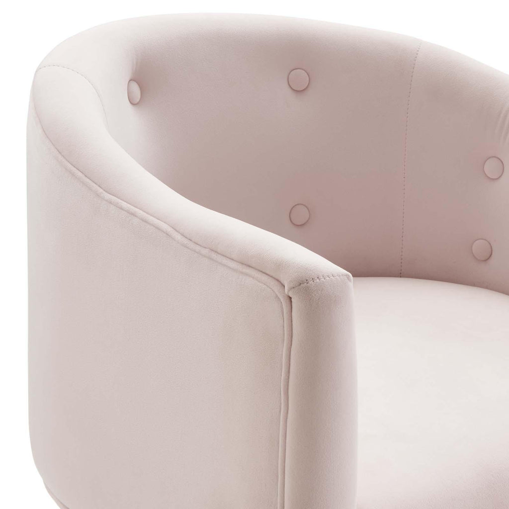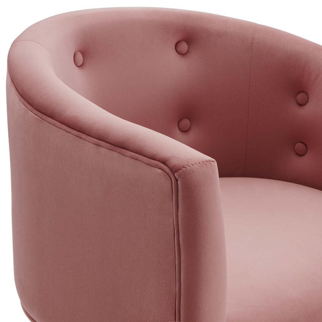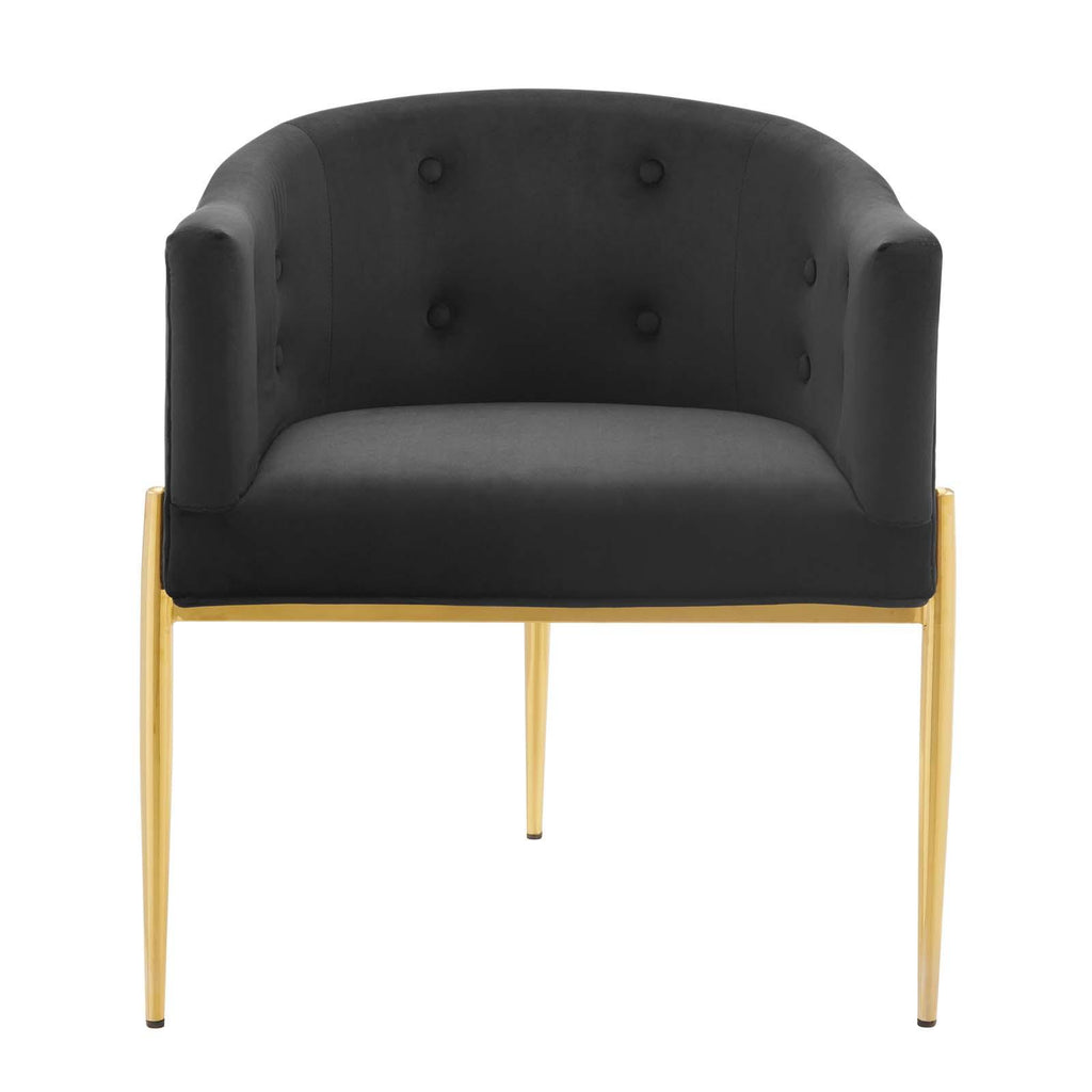 Bring luxe elegance to your living space or dining room with the Savour Tufted Performance Velvet Accent Armchair. Featuring a sweeping silhouette and updated club chair design, this velvet chair is suited for the dining table or living room, entryway, bedroom, or office as an accent chair. This accent chair is upholstered in stain-resistant performance velvet upholstery and features dense foam padding to offer a comfortable seat while dining, working, reading, or relaxing. Resting on chrome gold stainless steel legs, this versatile accent chair has interior button tufting and a charming curved shape. Chair Weight Capacity: 300 lbs.