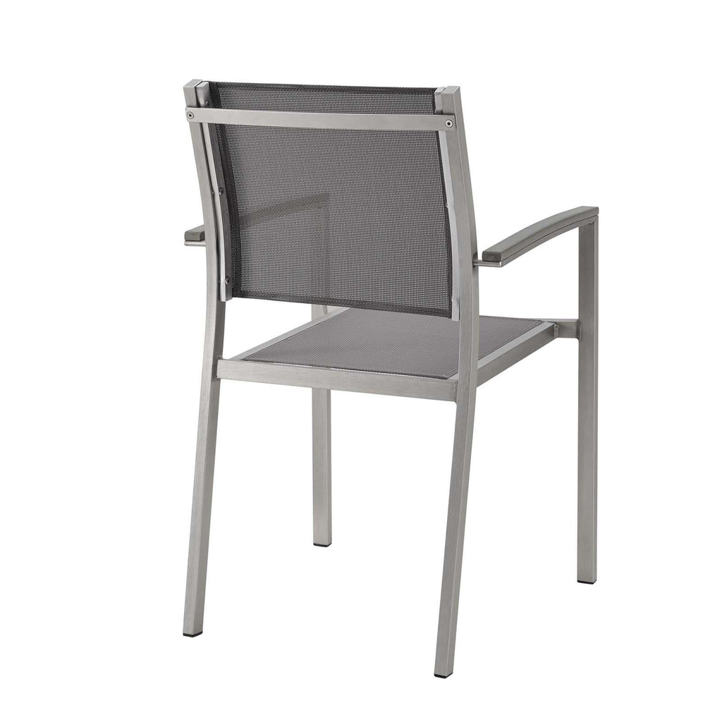 Enjoy your patio or backyard leisure time with the strong and durable Shore Outdoor Patio Dining Arm Chair in Mesh. Made with an anodized brushed aluminum frame and breathable Textilene� mesh, Shore Patio Dining Chair is a breeze to assemble and comes with non-marking black plastic foot caps under the legs. Chic and minimalist, the Shore Outdoor Dining Arm Chair complements your casual gatherings with a look and functionality you can rely on.