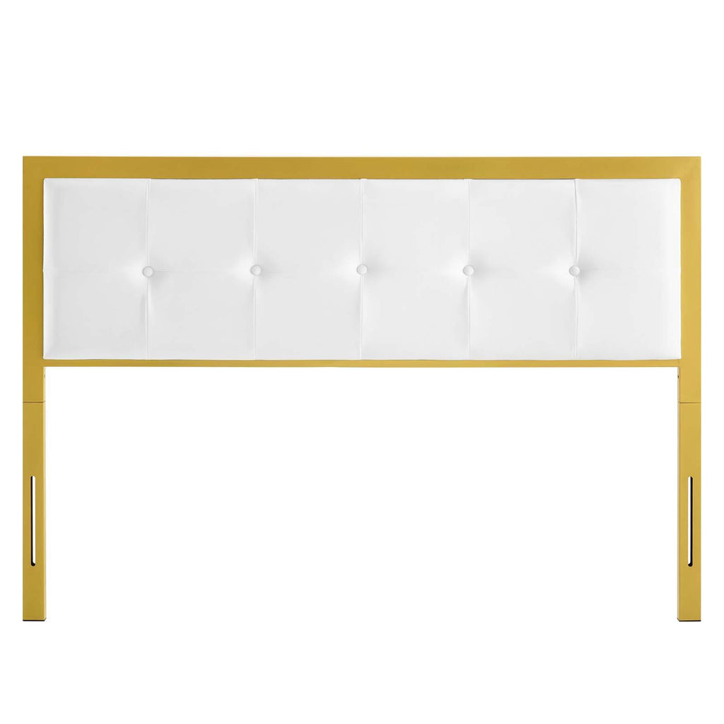 Reinvent the surroundings in your master bedroom or guest bedroom with the Teagan Tufted Performance Velvet King Headboard. Rich in vintage modern elegance and glam deco style, this king size headboard boasts clean lines, luxurious texture, and classic tufted buttons. The Teagan Upholstered Headboard is covered in soft, stain-resistant performance velvet and is padded in dense foam to offer supportive comfort while sitting up in bed reading, relaxing, or watching TV. Powder coated metal makes up the frame of this headboard for king beds for a construction that lasts. Teagan affixes to almost any king size bed frame creating a stunning backdrop for a variety of bedding and sham styles. Set Includes: One - Teagan Tufted King Headboard Tufted King Headboard Performance Velvet Upholstery Durable Stain-Resistant Fabric Powder Coated Metal Frame Dense Foam Padding For King Bed Frames Assembly Required Overall Product Dimensions: 1"L x 77"W x 42.5"H Headboard Dimensions: 1"L x 75"W x 15.5"H Floor to Bottom of Headboard: 24"H