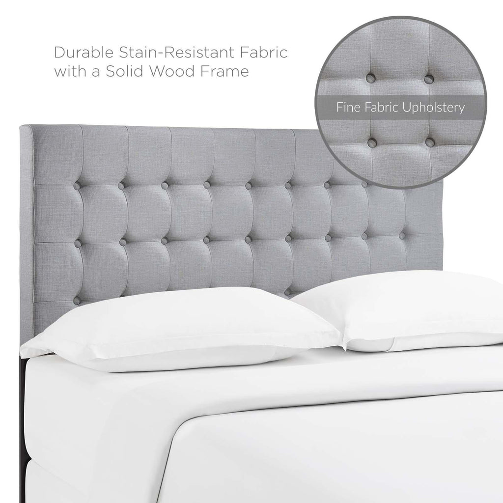 Awaken simple magnificence with the smooth lines of the Tinble Queen Headboard. Tinble Queen Headboard is a softly padded piece, built on contemporary ideas, and upholstered with soft linen. The frame is made of particleboard with solid wood poles. Deep button tufting completes the elegance of this headboard for queen beds, made to instill a sense of tranquility and quiet resolve for sound and restful nights. Set Includes: One - Addison Queen Headboard Elegantly tufted button headboard Deep inset buttons Fine linen upholstering Fiberboard and solid wood frame Mounts in 4 Locations Overall Product Dimensions: 3"L x 62"W x 51.5"H Bedframe Mounting Location: 4.5 - 8.5"H Mounting Location A - Height to Top of Headboard: 51.5"H Mounting Location A - Height to Bottom of Headboard: 25"H Mounting Location B - Height to Top of Headboard: 49"H Mounting Location B - Height to Bottom of Headboard: 22.5"H Mounting Location C - Height to Top of Headboard: 46.5"H Mounting Location C - Height to Bottom of Headboard: 20"H Mounting Location D - Height to Top of Headboard: 44"H Mounting Location D - Height to Bottom of Headboard: 17"H