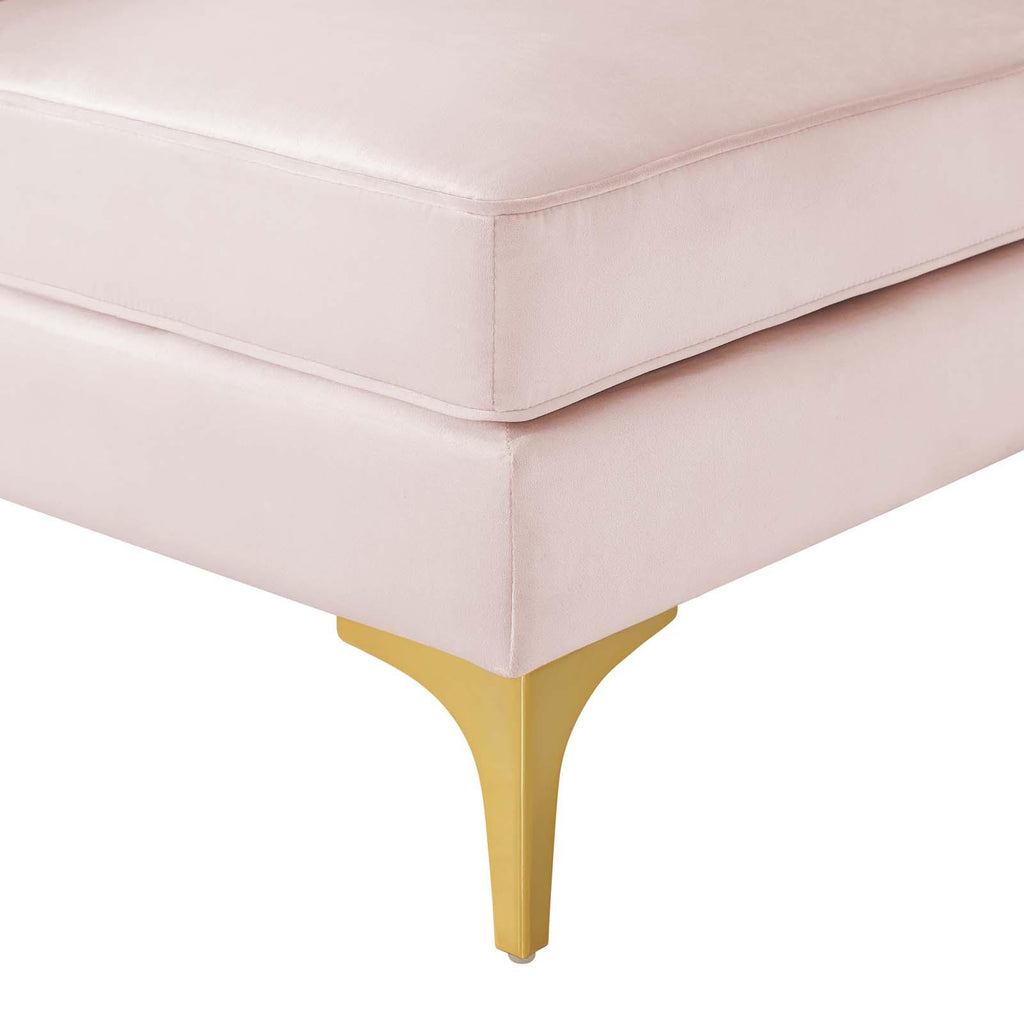 Elevate your living space with the visual appeal and linear detail of the Triumph Channel Tufted Performance Velvet Sectional Sofa Corner Chair. With interior channel tufting and luxe velvety texture, Triumph abounds in retro modern style and glam deco charm. This corner chair is part of a sectional sofa collection that allows you to create a seating solution that works for your living room, bedroom, office space, entryway, or lounge area. This upholstered chair is covered in stain-resistant performance velvet and features dense foam padding and a sinuous spring support system for a premium seating experience. The velvet chair sits on four gold metal legs with non-marking foot caps to protect your flooring. Sectional Sofa Corner Chair Weight Capacity: 440 lbs. Set Includes: One - Triumph Channel Tufted Sectional Sofa Corner Chair Channel Tufted Corner Sofa Performance Velvet Upholstery Durable Stain-Resistant Fabric Dense Foam Padding Sinuous Spring Support System Gold Metal Legs w/ Non-Marking Foot Caps Armless Chair Weight Capacity: 440 lbs. Overall Product Dimensions: 31.5"L x 31.5"W x 30.5"H Seat Dimensions: 31.5"L x 31.5"W x 11.5"H Backrest Dimensions: 7"W x 13.5"H Cushion Thichkness: 4.5"H