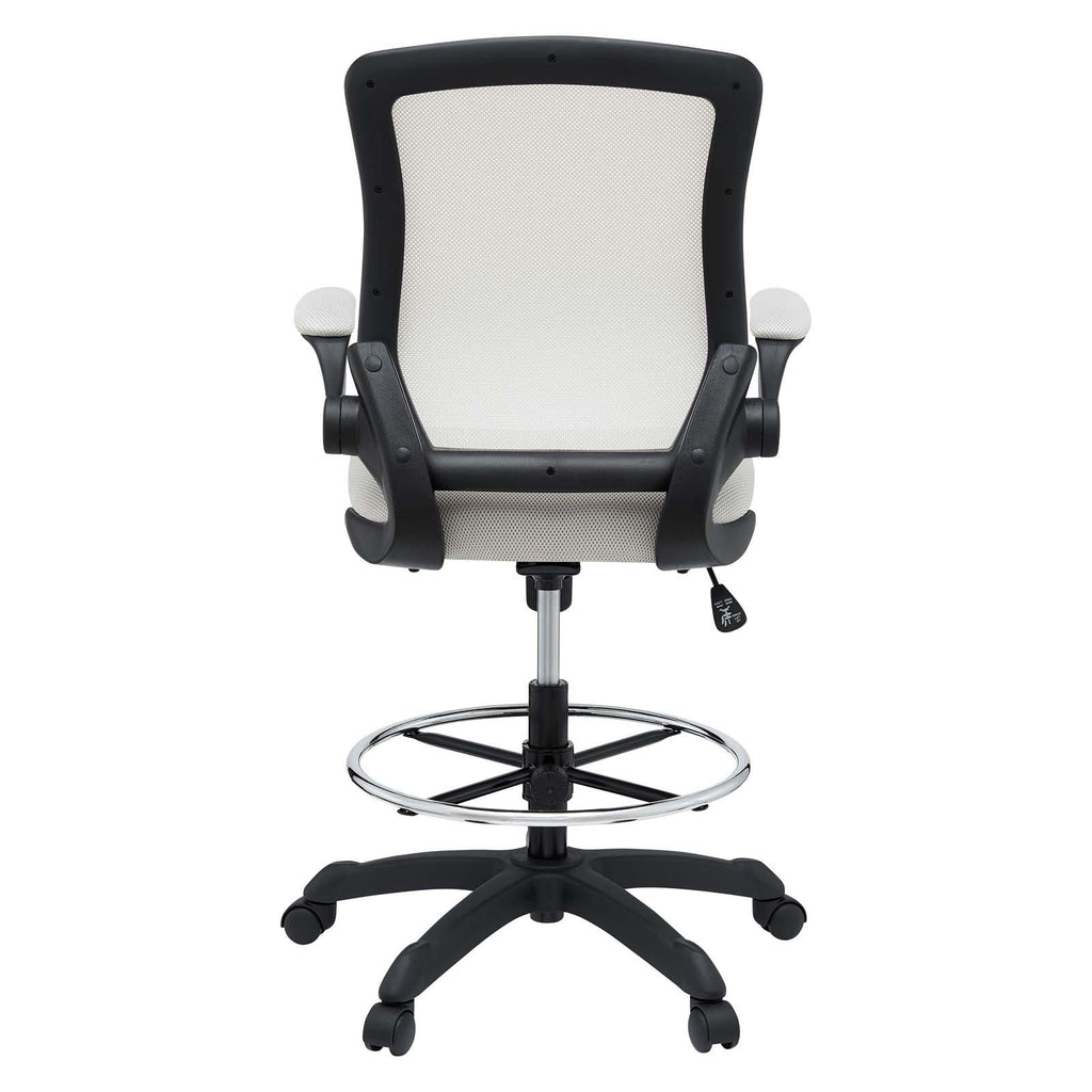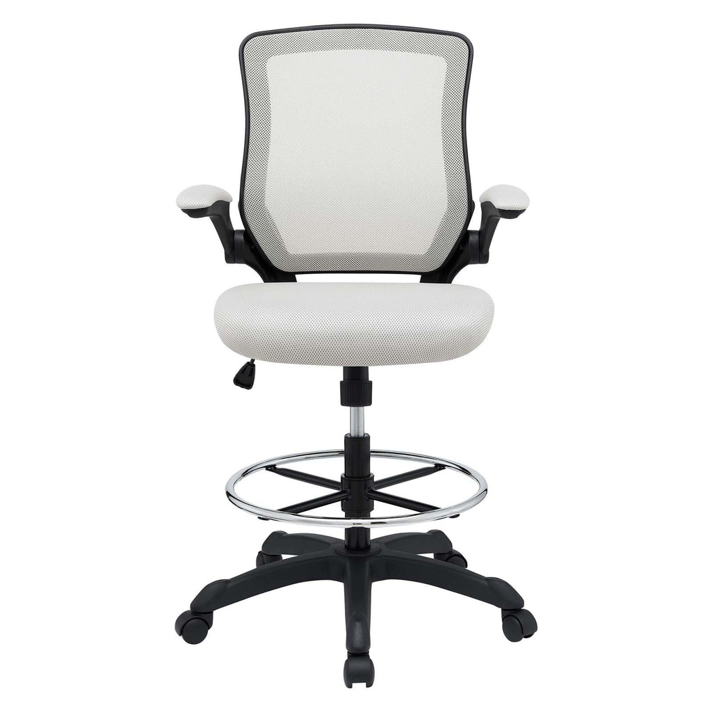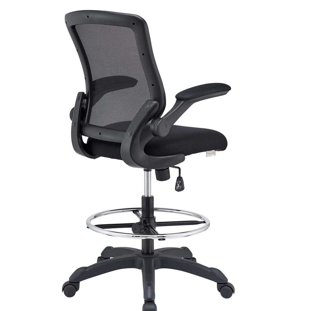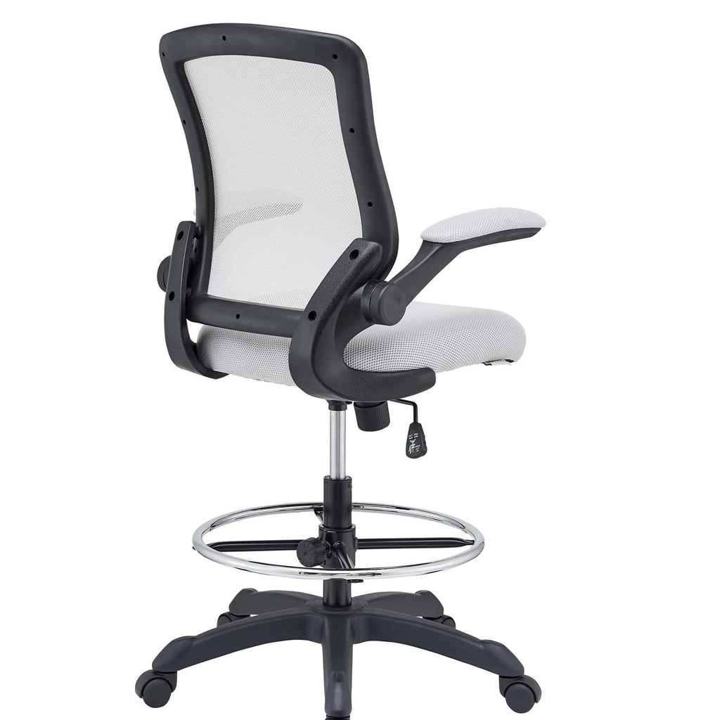 Chart new territory while seated from the comfort of the Veer Drafting Stool. Veer features a form-fitted breathable mesh back and padded waterfall mesh seat to keep your back and thighs posture perfect. Easily adjust the height of Veer's arms to match your seating position and height. Adjust the seat height with a one-touch pneumatic lift with hooded dual-wheel casters to ensure effortless gliding over carpeted offices. Complete with a foot ring and extra tall gas cylinder, Veer is a drafting stool built for the progressive minded. The Veer Drafting Stool is perfect for school, work, or home use. Set Includes: One - Veer Drafting Stool 90 Degree Flip-Up Arms Tall Drafting Chair Mesh Covered Foam Seat Standing Desk Chair Tall Pneumatic Gas Cylinder Seat Tilt Tension Control Weight Capacity: 331 Pounds Overall Product Dimensions: 26"L x 26"W x 42 - 49.5"H Seat Dimensions: 19"L x 19.5"W x 21.5 - 29.5"H Cushion Thickness: 2.5"H Backrest Dimensions: 18.5"W x 22"H Armrest Dimensions: 10"L x 3"W x 2"H