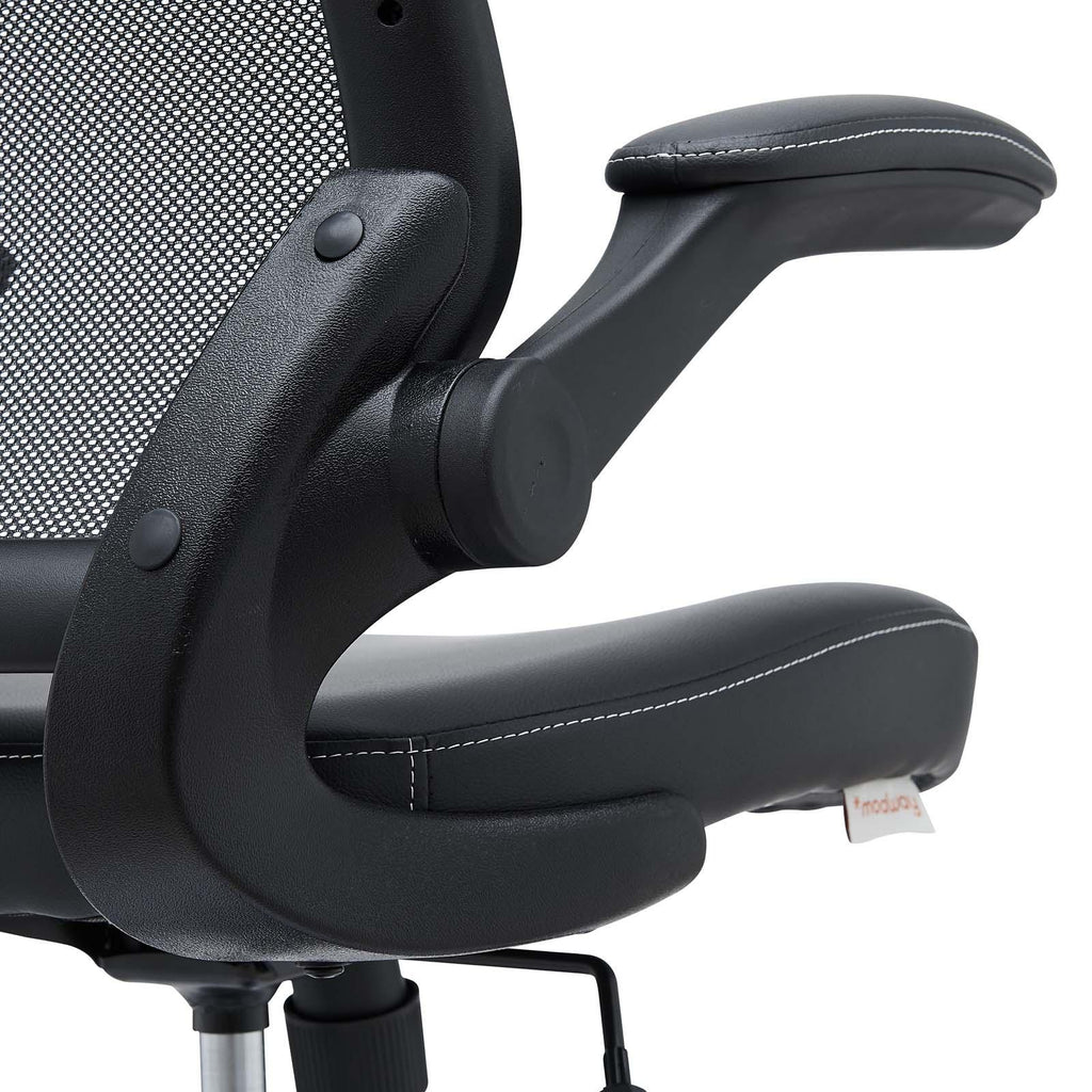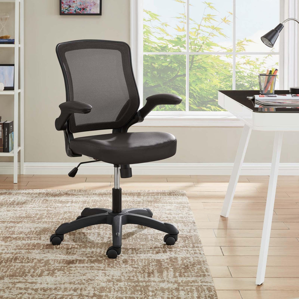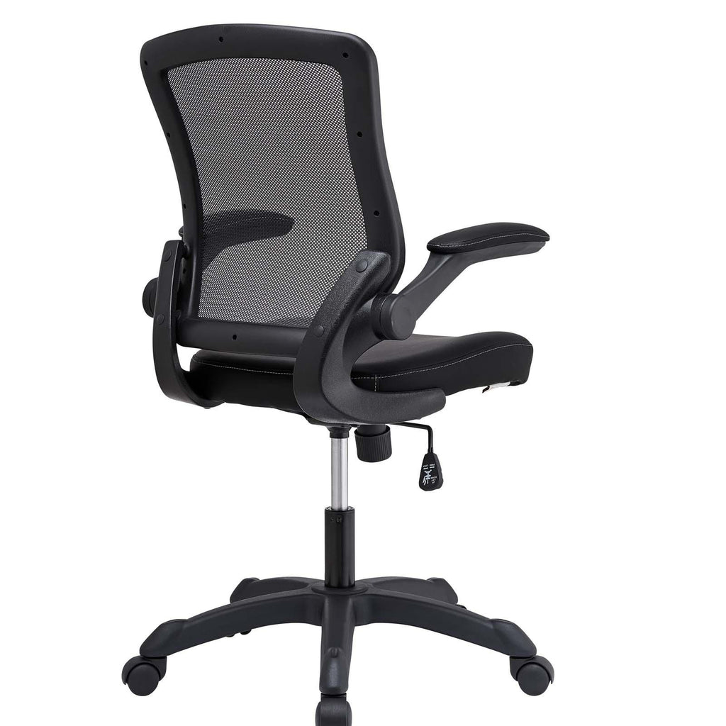 Chart new territory while seated from the comfort of the Veer Chair. Veer features a form-fitted breathable mesh back and padded waterfall vinyl seat to keep your back and thighs posture perfect. Easily flip Veer's padded armrests up and away when not needed with the chair's versatile 90 degrees rotating feature. Securely lock your back in place with a user-friendly seat tilt plus tension control knob�perfect for adjusting the chair to correctly fit your body weight. Adjust the seat height with a one-touch pneumatic lift with hooded dual-wheel casters to ensure effortless gliding over carpeted offices. Veer is a chair built for the progressive worker. Make yourself stand out as you venture forth from a place of naturally efficacious activities.