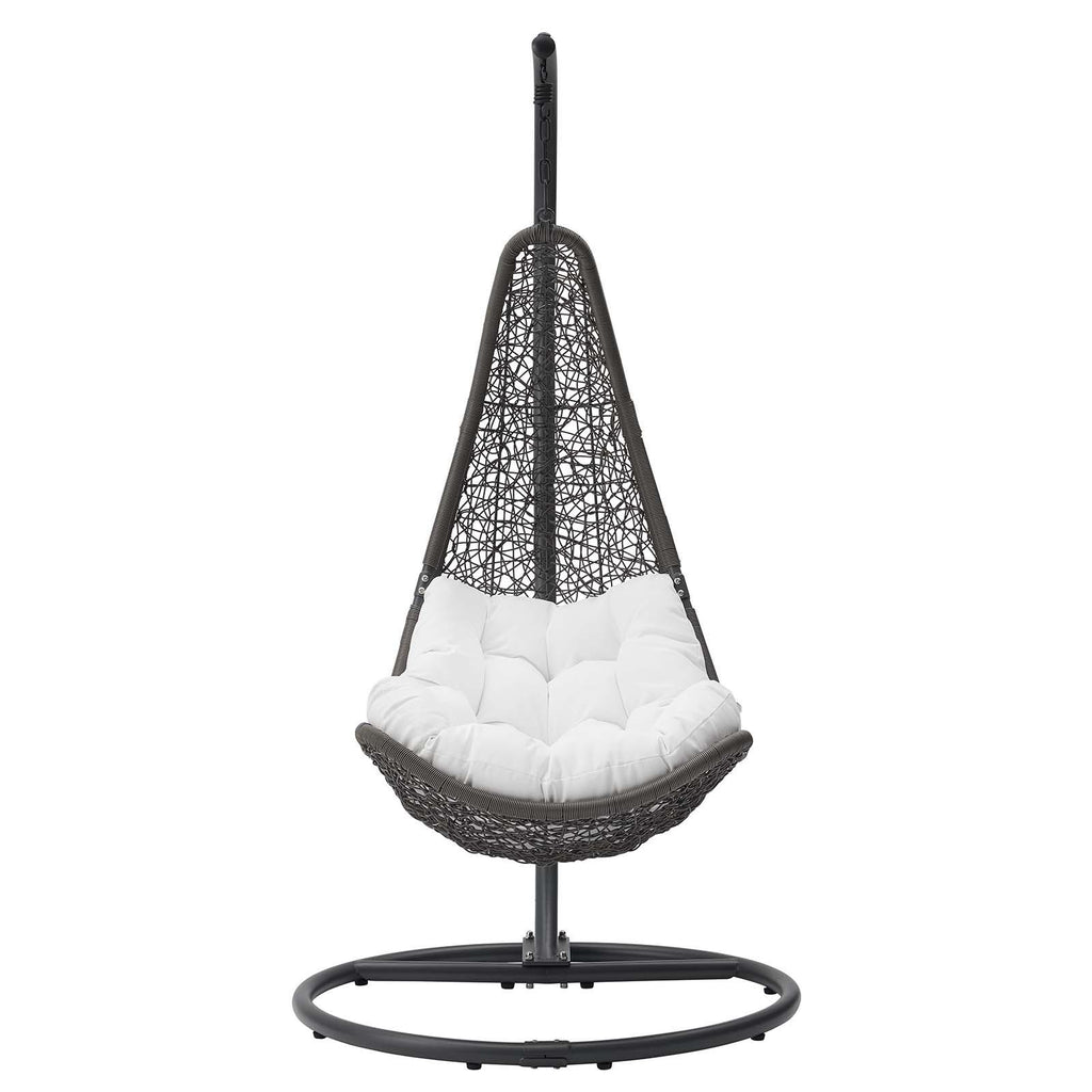 Escape to a place of quiet comfort with the Abate Swing Chair. Made with a luxurious synthetic rattan weave, and plush all-weather fabric cushion, Abate's organic design inspires simple joys and pleasurable moments. Abate Hanging Chair comes with a sturdy powder-coated steel frame and hanging chain apparatus that works well to enliven your patio, backyard, porch, or poolside d�cor. Stand-alone swinging chairs are also popularly used in indoor lounge, living, or bedroom spaces. Abate is weather and UV resistant.